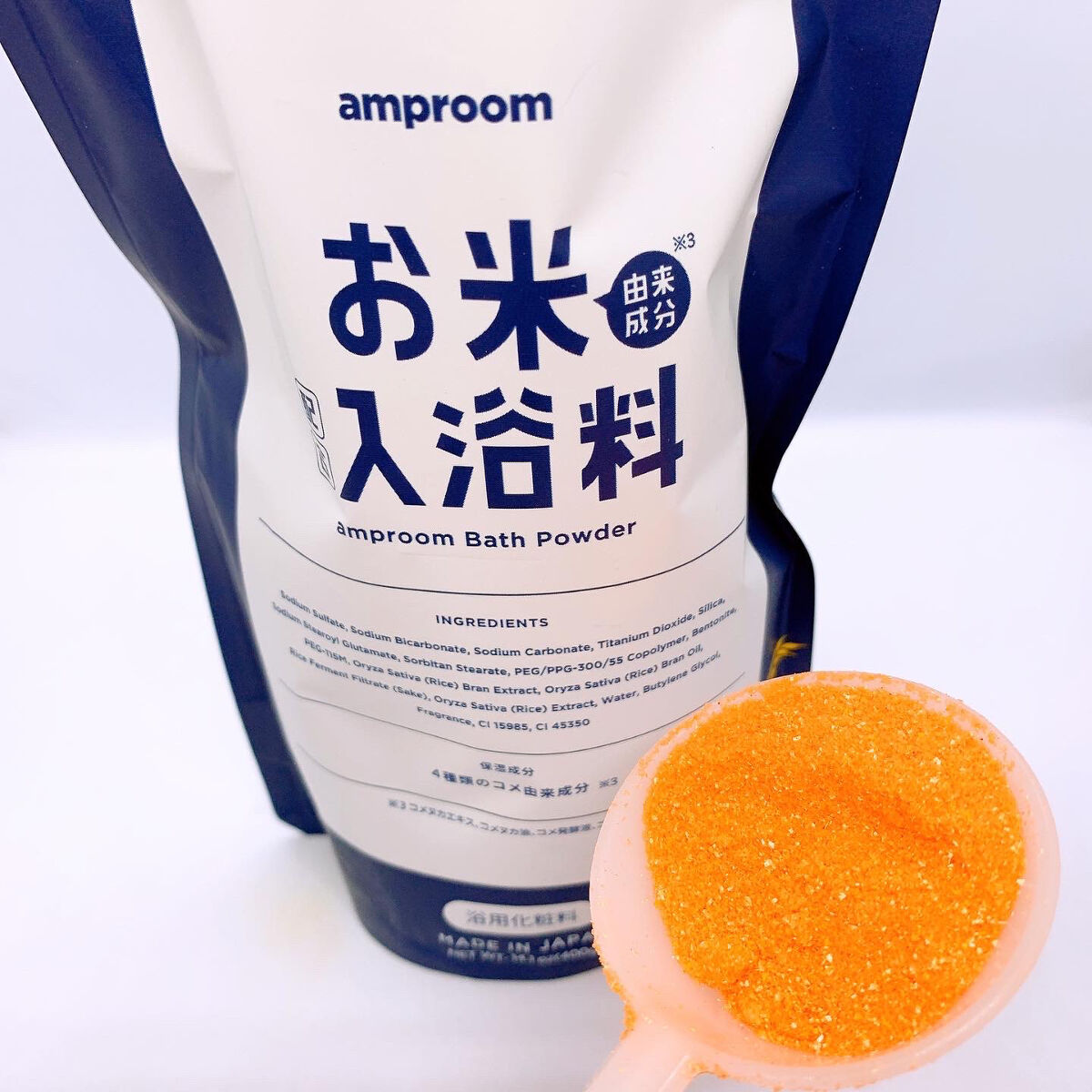 お米でモチモチ!つるつるなめらかで柔らかい肌に導くバスパウダー。 amproom(アンプルーム)は「美容液に浸かる」を実現。 美容成分を入浴剤に配合し、美容液のようなお湯を作り出します。 4種のお米由来成分を贅沢に配合(コメヌカエキス、コメヌカ油、コメ発酵液、コメエキス) 肌に吸い付いてくるまるで美容液のような、なめらかでやわらかな心地よいお湯に浸かり、ふんわりとしたマイルドシャボンの香りで、1日の終わりに至福のひと時を。
