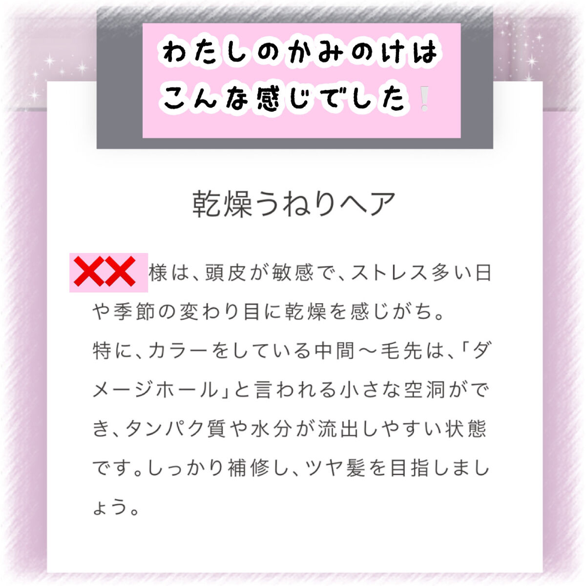 - パッケージをリニューアルして登場 オンライン上のカウンセリングで、髪と頭皮に関する質問の回答によって、一人ひとりの複雑な乾燥悩みをケアする成分を配合し、自宅に届けるシャンプー&リペア。新処方「与える・整える・守る」の3ステップからなり、アミノ酸由来の4種のホワイトプロテインで髪に潤いを与えた後、2種のフィトキューティクルで髪の表面を整えます。熱に反応する2種のヒートアクティブ成分がドライヤーやヘアアイロンの熱から髪を守ります。定期コースあり。「シリコーン・パラベン・エタノール*1・鉱物油・石油系界面活性剤・ラウリル硫酸Na・旧表示指定成分」不使用。シャンプー *1 リペアのみエタノール配合