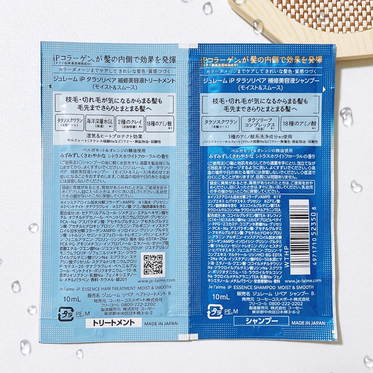 商品詳細情報Je l'aime iP タラソリペア 補修美容液 シャンプー/トリートメント (モイスト&スムース)