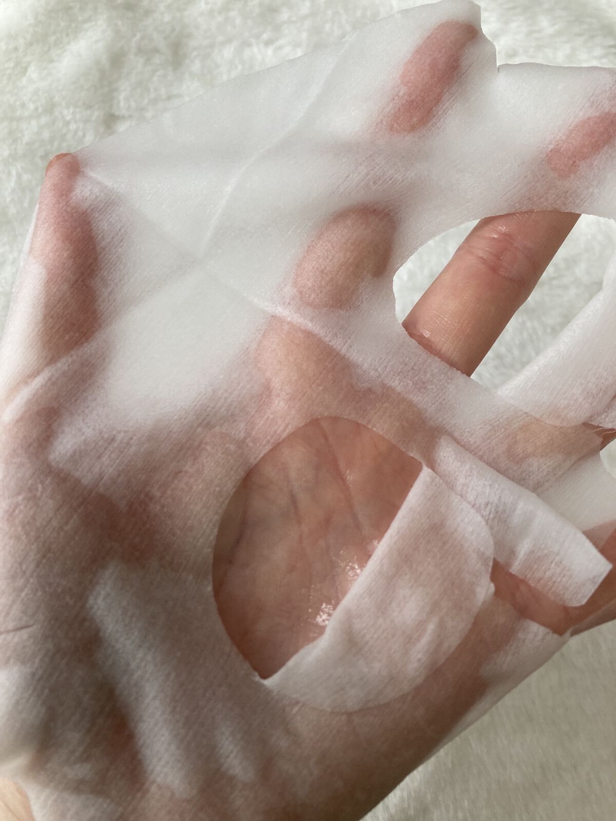 滴るほどのヒタヒタシートで 乾いたお肌が生き返る気がします ウルウルふっくらもちもちです このマスクをつけている約3分間が 私はたまらなく幸せ🍀 ハーブみたいな香りがあるので 苦手な方がいるかもしれません