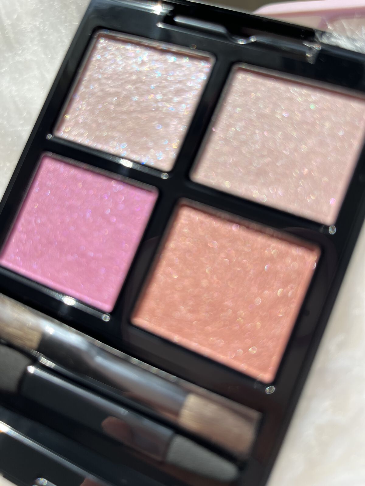 粉質がデパコスの中でもダントツで柔らかくしっとりで好き♡ 1番の決め手はザックザクのゴールドラメ✨ もはや宝石なんよ、キラキラ✨ カラー展開がオシャレすぎる♡ もぅこれはホンマにホンマに私の人生の中で超えれるアイシャドウないのではってくらい好きです♡ 艶感と華やかさで大人のピンクメイクが楽しめる◎