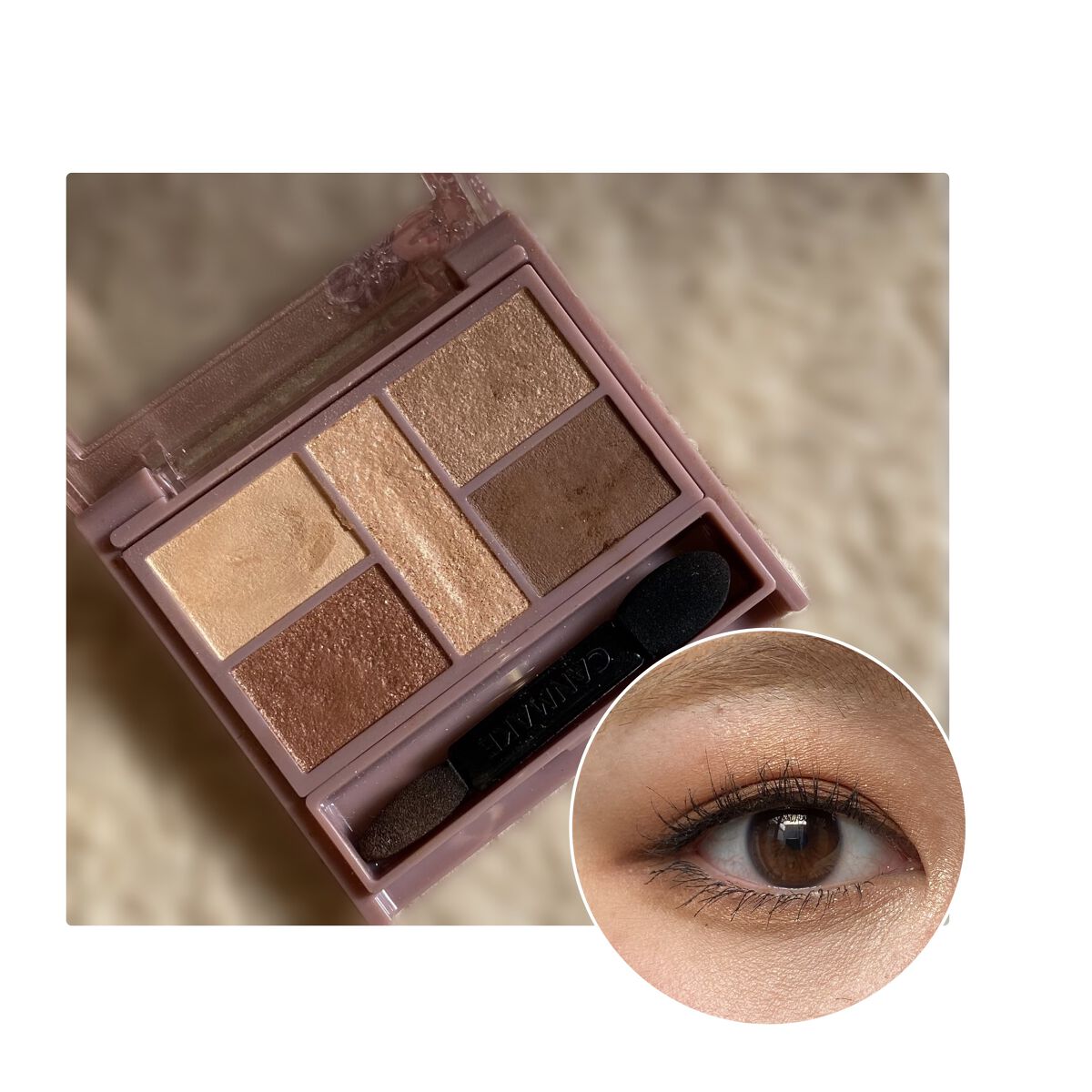 5色がセットされたアイシャドウで、2通りのメイクが楽しめる♪ しっとり質感にパールとラメがふんだんに入っているから艶めくような立体感が出せて可愛い…!! 締め色ブラウンだけマットだから、より引き締まって見えると思ったよ♡