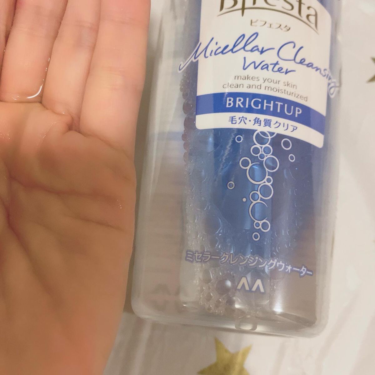 ビフェスタ ミセラークレンジングウォーターブライトアップ使い切り&リピート✨本当に水みたいなサラサラのテクスチャーでコットンにとって軽く肌を拭き取るだけでメイクがオフできるので便利です🥰混合肌の私は朝起きると鼻周りやおでこにかなり油分がじゅわ...