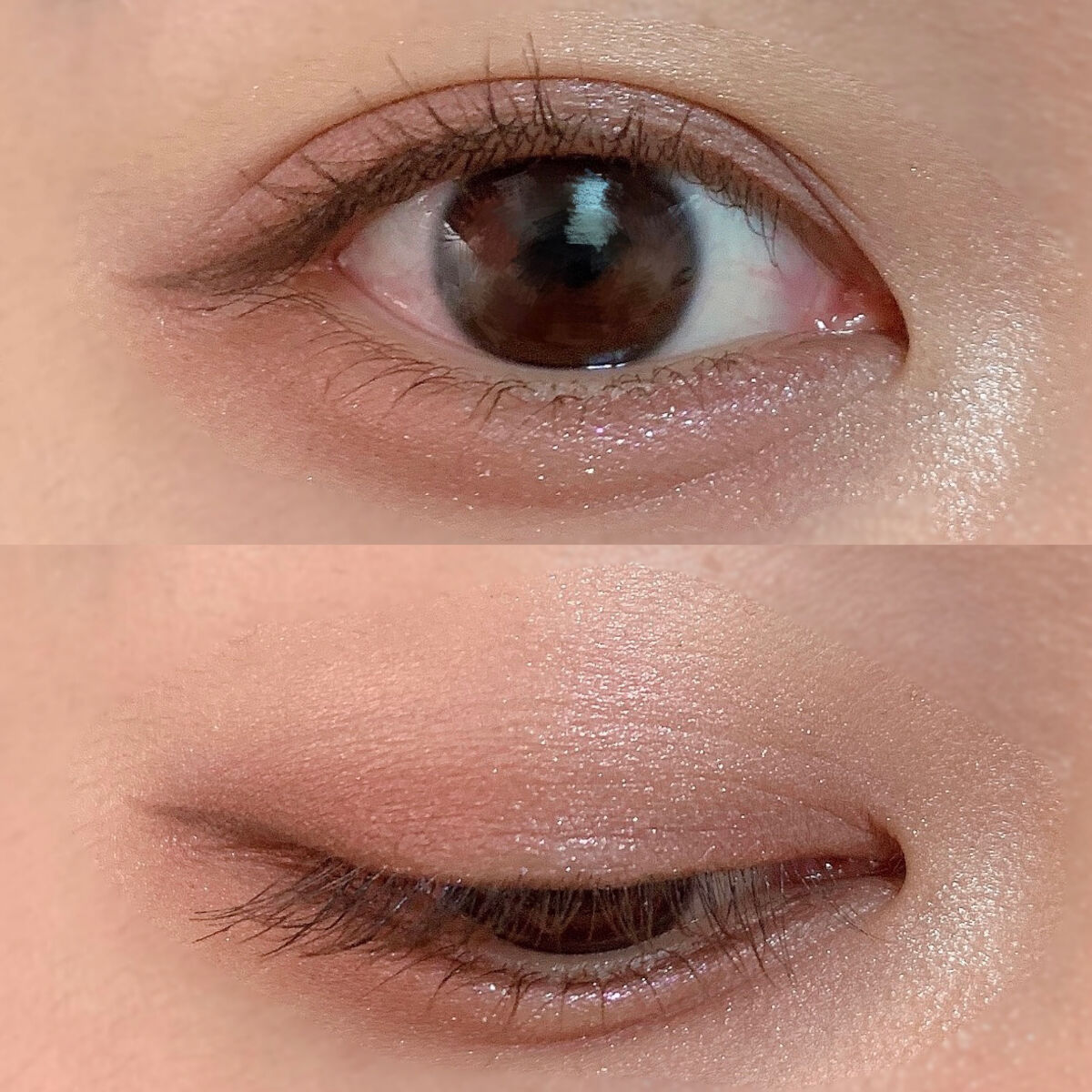 透け感のあるシマーなグレーアイシャドウ。まろやか。黒ごまミルクに少し紅茶足したみたいな色?色味はとってもかわいい。 透け感が可愛かった〜。 最初は瞼に使ってたけどなんかくすむ?よれる?気がして、試しにアイブロウとして使ってみたらぴったり。 最後までケースがしっかり使えたのが嬉しかった。 とってもいい音で締まるんよ。すき。ありがとうございました!