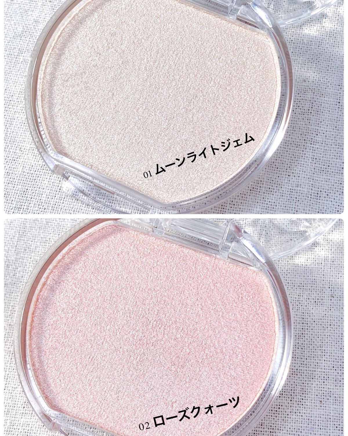 キャンメイクむにゅっとハイライター全色比較繊細なラメがたくさん入った、密着度の高いハイライト‼️01ムーンライトジェム一般的なハイライトカラーホワイトベージュって感じかな?パーソナルカラー関係なく使える!02ローズクォーツピンクハイライト🎀💕...