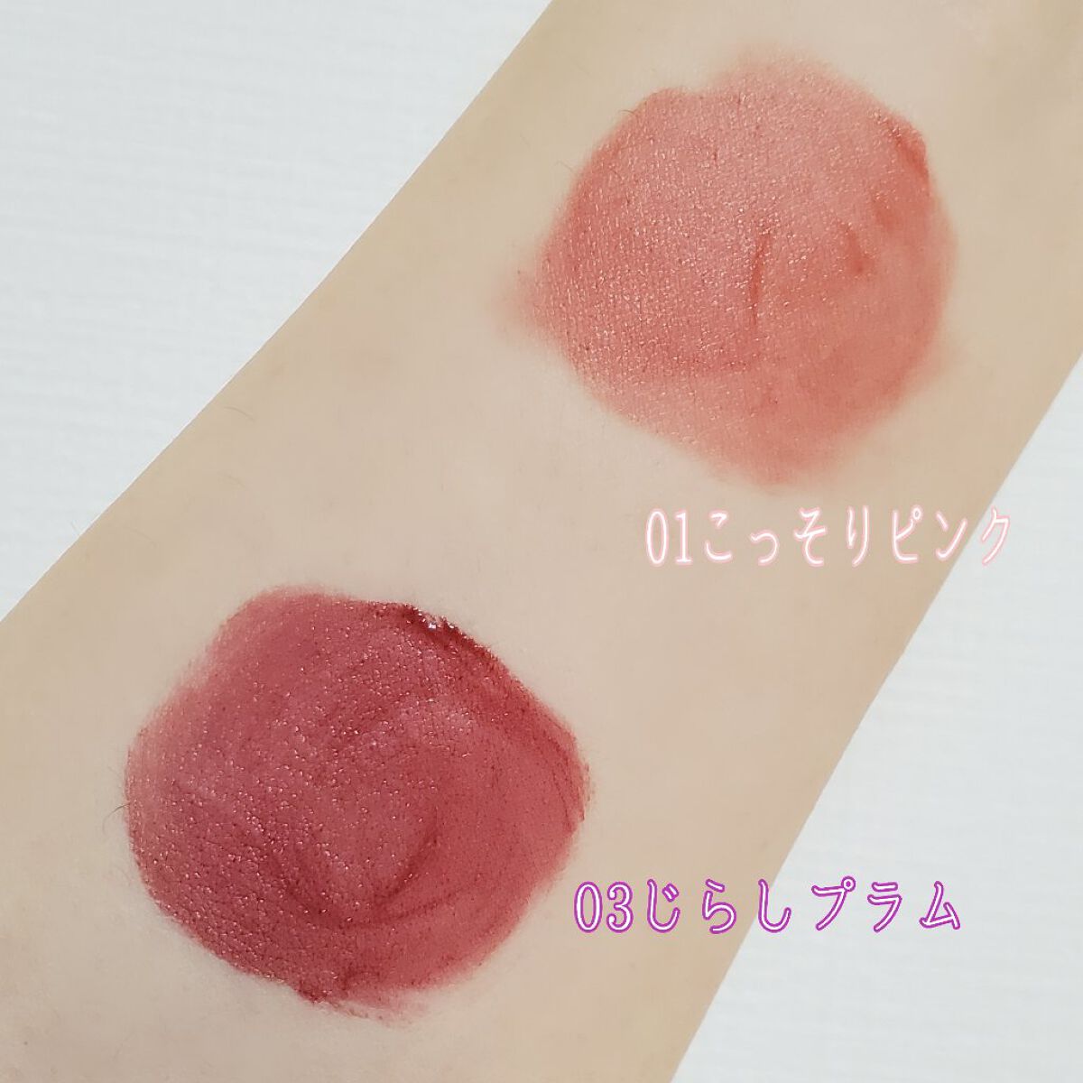 - <101 涙ショコラ(限定)> ジメチコン、シクロペンタシロキサン、イソドデカン、(ジメチコン/ビニルジメチコン)クロスポリマー、ジメチコンクロスポリマー、トリイソステアリン酸ポリグリセリル-2、(ビニルジメチコン/メチコンシルセスキオキサン)クロスポリマー、トリメチルシロキシケイ酸、黄4、酸化チタン、1,2-ヘキサンジオール、PEG-10ジメチコン、酢酸トコフェロール、酸化鉄、シクロヘキサシロキサン、ジステアルジモニウムヘクトライト、エチルヘキシルグリセリン、赤色202号、炭酸プロピレン、コメヌカ油、カニナバラ果実油、水、トコフェロール、ヒアルロン酸Na <01こっそりピンク> ジメチコン、シクロペンタシロキサン、イソドデカン、(ジメチコン/ビニルジメチコン)クロスポリマー、ジメチコンクロスポリマー、(ビニルジメチコン/メチコンシルセスキオキサン)クロスポリマー、トリイソステアリン酸ポリグリセリル-2、酸化鉄、トリメチルシロキシケイ酸、酸化チタン、リンゴ酸ジイソステアリル、1,2-ヘキサンジオール、酢酸トコフェロール、PEG-10ジメチコン、シクロヘキサシロキサン、ジステアルジモニウムヘクトライト、エチルヘキシルグリセリン、黄4、炭酸プロピレン、赤202、トリエトキシカプリリルシラン、コメヌカ油、カニナバラ果実油、水、トコフェロール、ヒアルロン酸Na <02ふいうちレッド> リンゴ酸ジイソステアリル、ダイマージリノール酸(フィトステリル/イソステアリル/セチル/ステアリル/ベヘニル)、水添ポリイソブテン、ビスジグリセリルポリアシルアジペート-2、トリイソステアリン酸ポリグリセリル-2、セレシン、マイクロクリスタリンワックス、乳酸メンチル、酸化チタン、1,2-ヘキサンジオール、酸化鉄、酢酸トコフェロール、香料、赤104(1)、黄4、青1、リナロール、リモネン、ヘキシルシンナマル <03じらしプラム> ジメチコン、シクロペンタシロキサン、イソドデカン、(ジメチコン/ビニルジメチコン)クロスポリマー、ジメチコンクロスポリマー、トリメチルシロキシケイ酸、トリイソステアリン酸ポリグリセリル-2、(ビニルジメチコン/メチコンシルセスキオキサン)クロスポリマー、酸化チタン、酸化鉄、リンゴ酸ジイソステアリル、1,2-ヘキサンジオール、酢酸トコフェロール、PEG-10ジメチコン、シクロヘキサシロキサン、赤202、エチルヘキシルグリセリン、黄4、ジステアルジモニウムヘクトライト、炭酸プロピレン、トリエトキシカプリリルシラン、コメヌカ油、カニナバラ果実油、水、トコフェロール、ヒアルロン酸Na <04 ほろよいピンク> ジメチコン、シクロペンタシロキサン、(ジメチコン/ビニルジメチコン)クロスポリマー、イソドデカン、ジメチコンクロスポリマー、(ビニルジメチコン/メチコンシルセスキオキサン)クロスポリマー、酸化チタン、リンゴ酸ジイソステアリル、トリメチルシロキシケイ酸、トリイソステアリン酸ポリグリセリル-2、酢酸トコフェロール、酸化鉄、PEG-10ジメチコン、1,2-ヘキサンジオール、ジステアルジモニウムヘクトライト、シクロヘキサシロキサン、エチルヘキシルグリセリン、黄4、炭酸プロピレン、赤202、トリエトキシカプリリルシラン、コメヌカ油、カニナバラ果実油、水、トコフェロール、ヒアルロン酸Na <05 きづいてテラコッタ> ジメチコン、シクロペンタシロキサン、イソドデカン、(ジメチコン/ビニルジメチコン)クロスポリマー、ジメチコンクロスポリマー、(ビニルジメチコン/メチコンシルセスキオキサン)クロスポリマー、トリイソステアリン酸ポリグリセリル-2、トリメチルシロキシケイ酸、酸化鉄、酸化チタン、リンゴ酸ジイソステアリル、黄4、1,2-ヘキサンジオール、PEG-10ジメチコン、酢酸トコフェロール、シクロヘキサシロキサン、ジステアルジモニウムヘクトライト、エチルヘキシルグリセリン、炭酸プロピレン、トリエトキシカプリリルシラン、コメヌカ油、カニナバラ果実油、水、トコフェロール、ヒアルロン酸Na