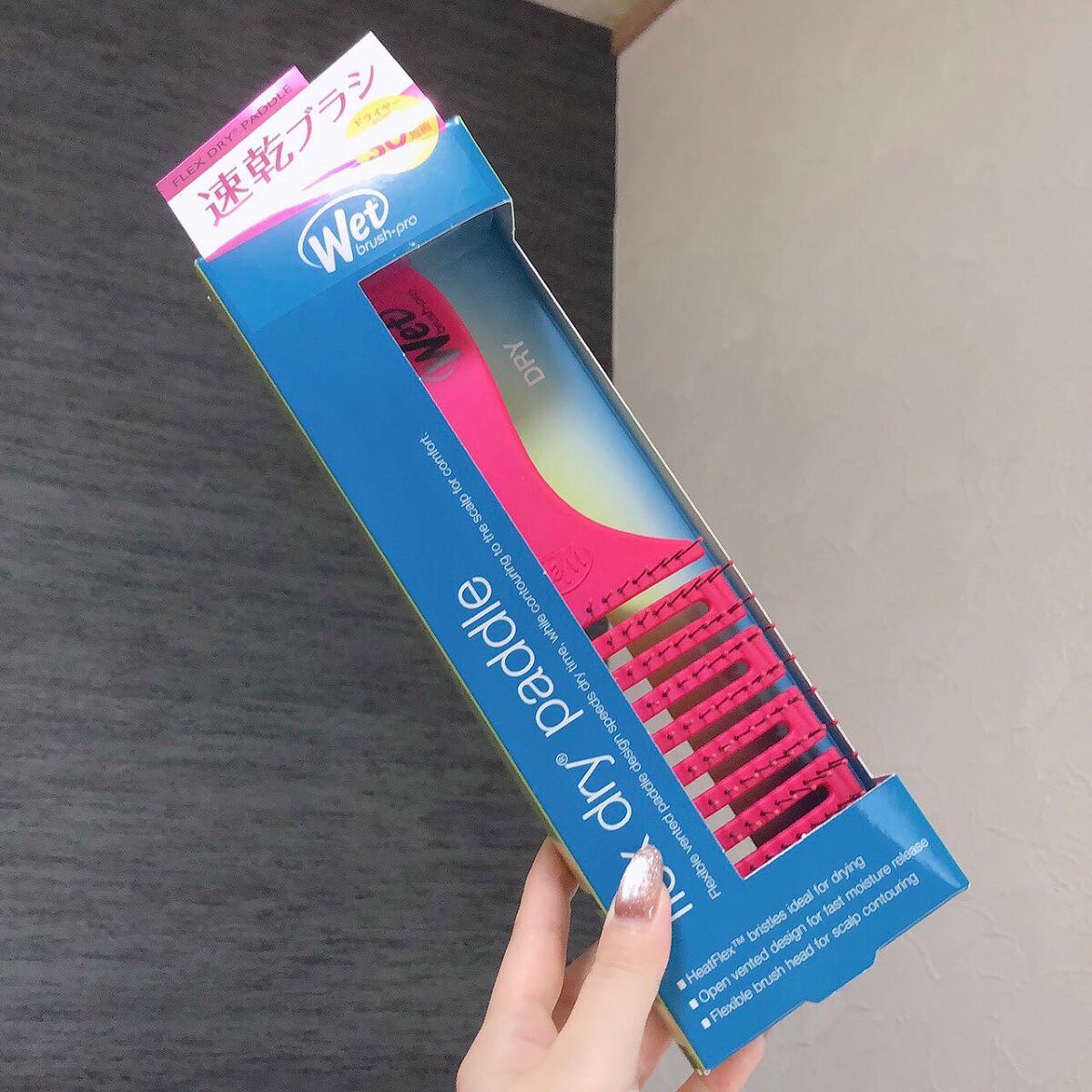 速乾ブラシでストレスフリーなツヤ髪へ プロ フレックスドライ パドル ピンク使ってみたよー❤️ 頭にフィットするしよく曲がるの!それにピンが柔らかくて濡れた髪でも絡まりにくく、とかすだけでトリートメント後のようなツヤサラな髪になっちゃう🙌 大きめのブラシだから髪をいっぺんにとかすことが出るよー!娘も気に入ってるし私もお気に入り🤭❤️