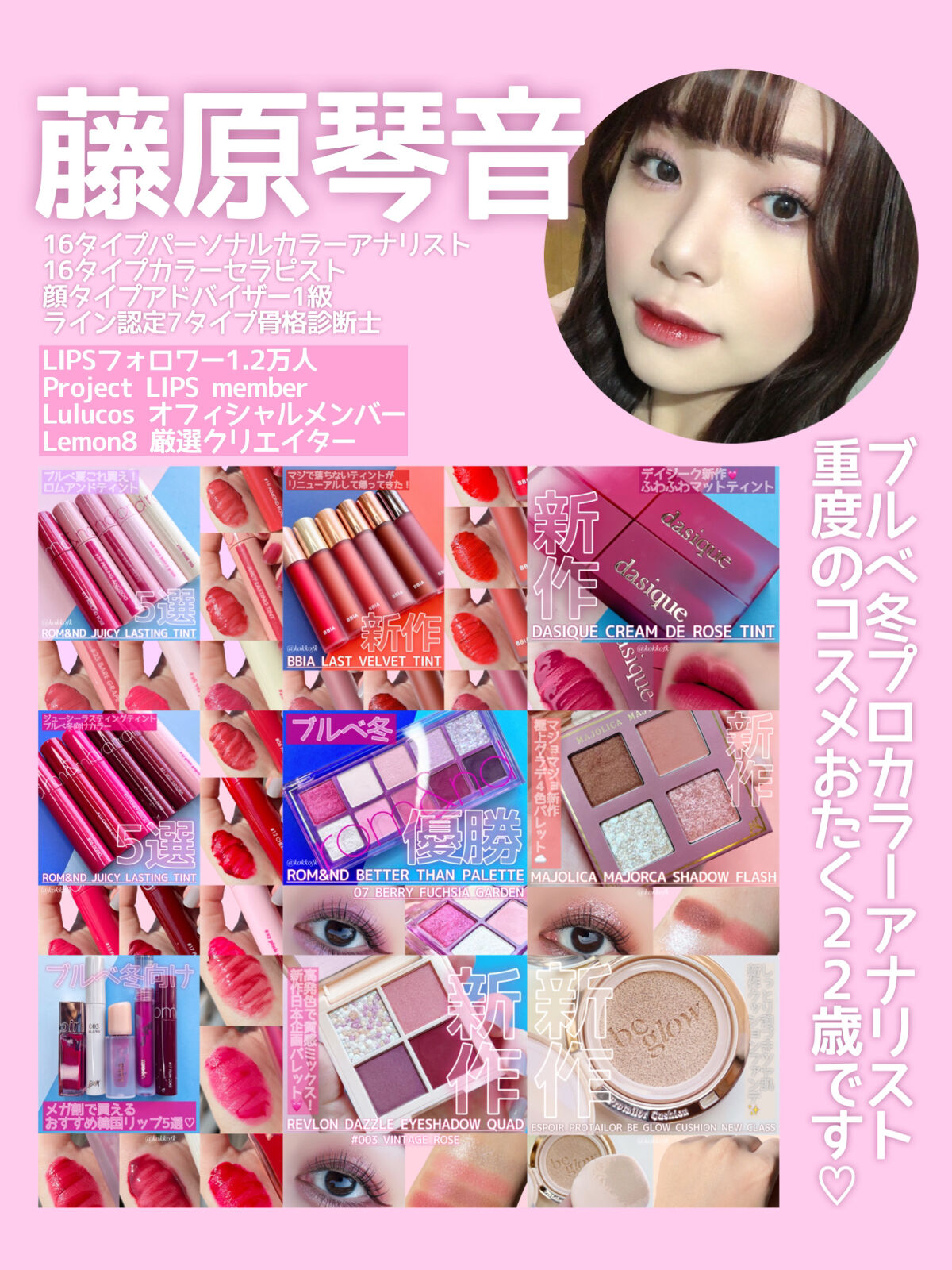 薄く唇に密着する新作マットティント。 マットなのにかなりしっとりとしていて 乾燥を感じなくてびっくりでした! 一気にこなれ感が出るトレンドカラーです♡ やや青みの華やかローズレッド 公式画像より鮮やかめに感じました。 やや黄みの強くて深いオレンジレッド ストロングオータムに超激推しです! やや黄みの非常に深く濃いダークブラウン ディープオータムに激推しです! かわいい雰囲気になれるピンクリップです♡ やや青みの柔らかいくすみピンクベージュ ミューテッドサマーにおすすめです! 青みの落ち着いたローズピンク やや青みのとても鮮やかなビビッドレッド ビビッドウィンターに特におすすめ! 既存マットティントよりもさらに ふわふわなマット感が魅力のリップで、 軽くティッシュオフしてもほとんど落ちない◎ マスクにも激推しのティントなので、 ぜひ皆さんもチェックしてみてね❤︎