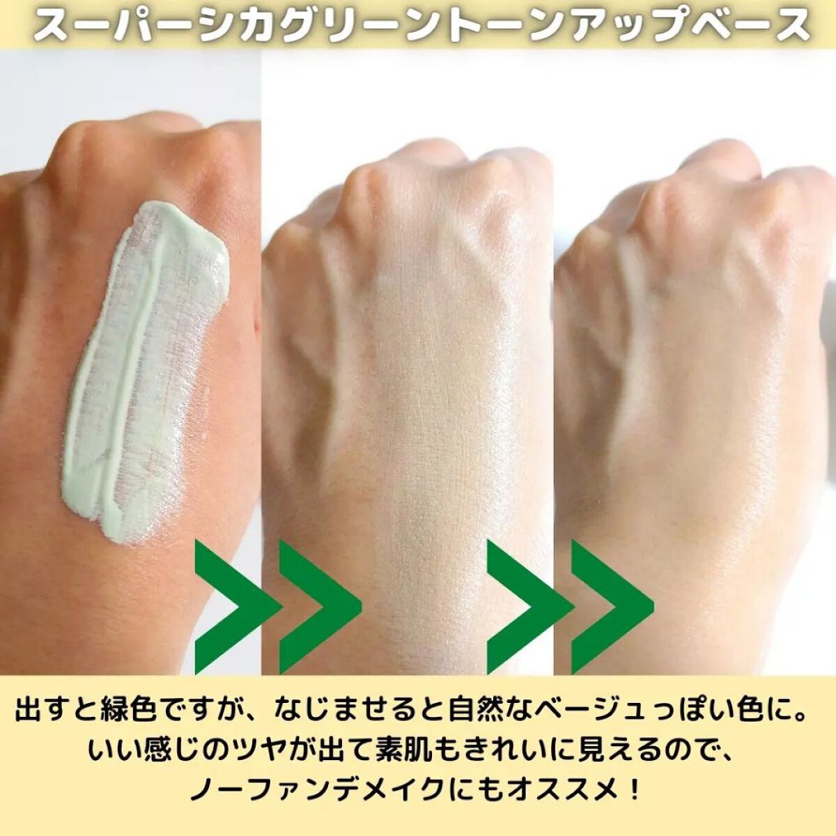 デイジークのグリーンの下地は、ずっと気になっていたの…私は頬に赤みが出やすい人だから、パープルやブルーの下地も好きなんだけど、結局グリーンの下地が1番肌が綺麗に見える( ᐡ. ̫ .ᐡ )🎶💗 テクスチャーは硬すぎず、緩すぎずです!お肌の上で伸ばしやすくって、使いやすい☾︎.*·̩͙ 届いたときこの商品の大きさにびっくりした!思ったよりも大きかったので、なかなか無くなりにくそうです.͙✼̥