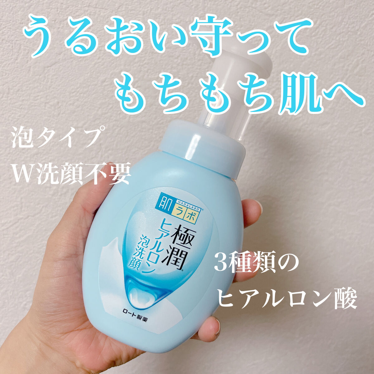 - 「肌ラボ 極潤 ヒアルロン泡洗顔」は、うるおい感と心地よい洗い上がりにこだわった洗顔料です。 3種のヒアルロン酸*1配合の濃密な泡。うるおいを守りながら汚れを落とし、洗うたび健やかなもちもち肌へ導きます。 W洗顔不要でメイクも落とせます*2。 肌へのやさしさに配慮した、無香料・無着色・アルコール(エタノール)フリー・パラベンフリー。 肌ラボは、「肌にいいこと」を突き詰め、健康な素肌を目指す「ヘルススキンケアブランド」です。肌が本当に求めるうるおいを追求すべく、うるおい成分であるヒアルロン酸にこだわり抜き、必要なものはできる限りそぎ落として、デザインも容器もシンプルに。 *1:うるおい成分:ヒアルロン酸ヒドロキシプロピルトリモニウム(肌吸着型ヒアルロン酸) 、アセチルヒアルロン酸Na(スーパーヒアルロン酸)、ヒアルロン酸Na *2:アイメイクなどのポイントメイクには、専用リムーバーのご使用をおすすめします。