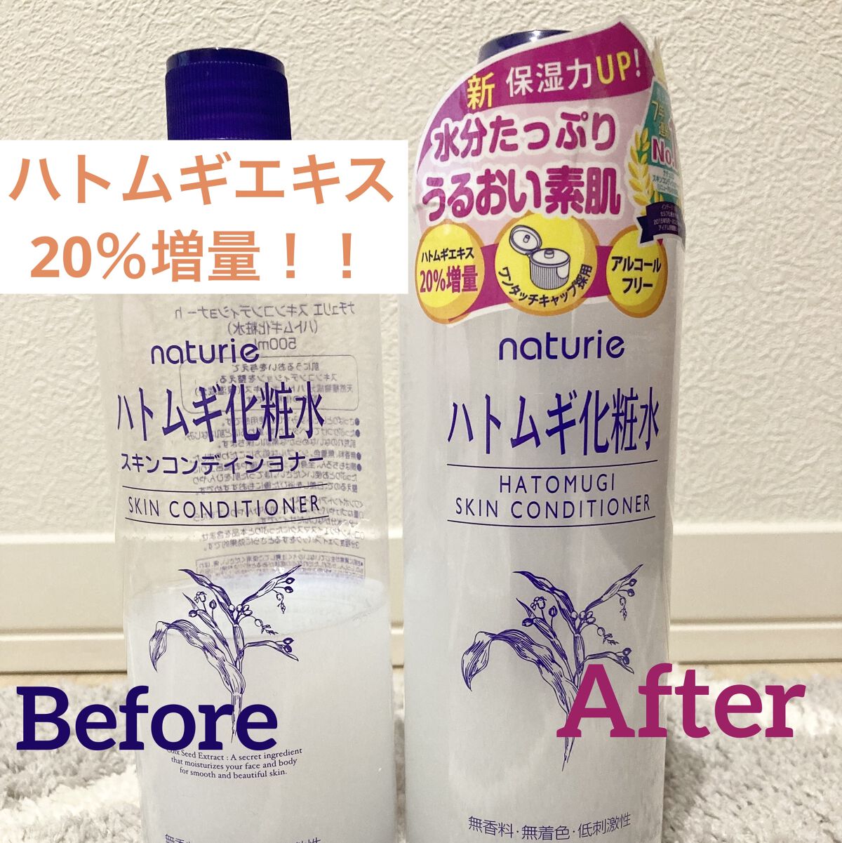 ハトムギエキス20%増量で保湿力UP →天然植物由来の保湿成分ハトムギエキスを従来品より20%増量 アルコールフリーに →毎日快適に使いやすいアルコールフリーになった テクスチャーはみずみずしくベタつかない 肌にスーッと馴染んでくれる