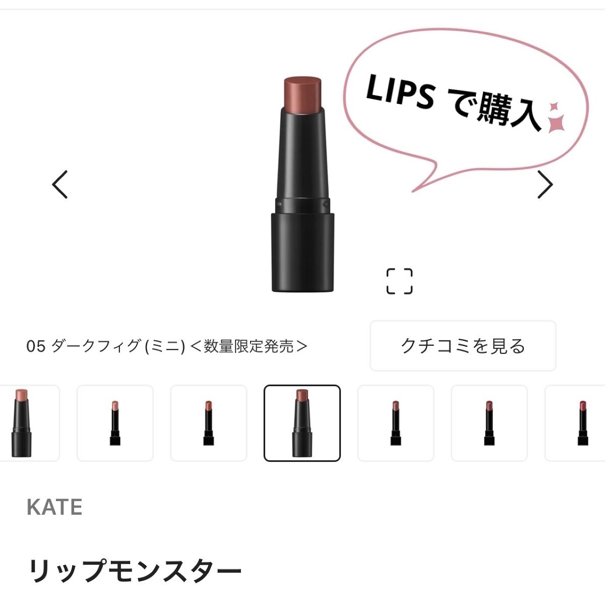 KATEケイトリップモンスター05 ダークフィグくすみが強いブラウンレッドカラー。でも、透け感もあって可愛い。塗ってしばらく放置するとティッシュオフしてもつかないし色持ちもよくてホント助かる!イエベもブルベも使いやすいニュートラルカラーじゃな...