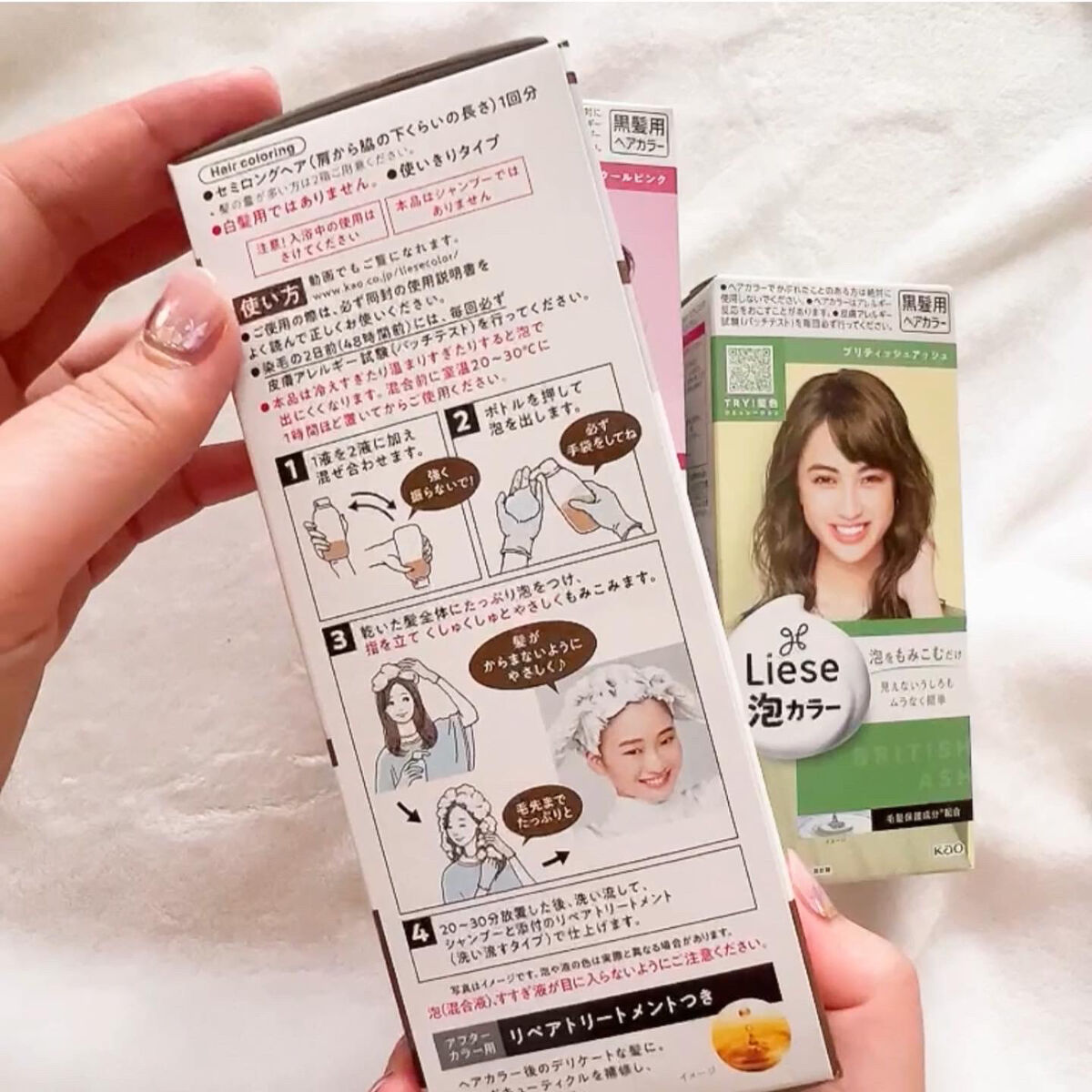 - 【医薬部外品】 【黒髪用ヘアカラー】 泡で簡単! 濃密泡が染まりにくい根元や見えない後ろにもしっかり密着して、ムラなく美しい仕上がりを実現。 透明感とやわらかさを表現するために、グレーやブルーの色味をブレンドした「サロン発想」の色設計。 毛髪保護成分*配合。指通りなめらか、しっとり質感の染め上がり。 *水解シルク液、軟質ラノリン脂肪酸 アフターカラー用リペアトリートメント(化粧品)つき。 ●セミロングヘア(肩から脇の下くらいの長さ)1回分 ●1回使いきりタイプ ●白髪用ではありません ※使用上の注意をよく読んで、正しくお使いください。 ※ヘアカラーでかゆみ、発疹、発赤がでたことのある方は、絶対に使用しないでください。