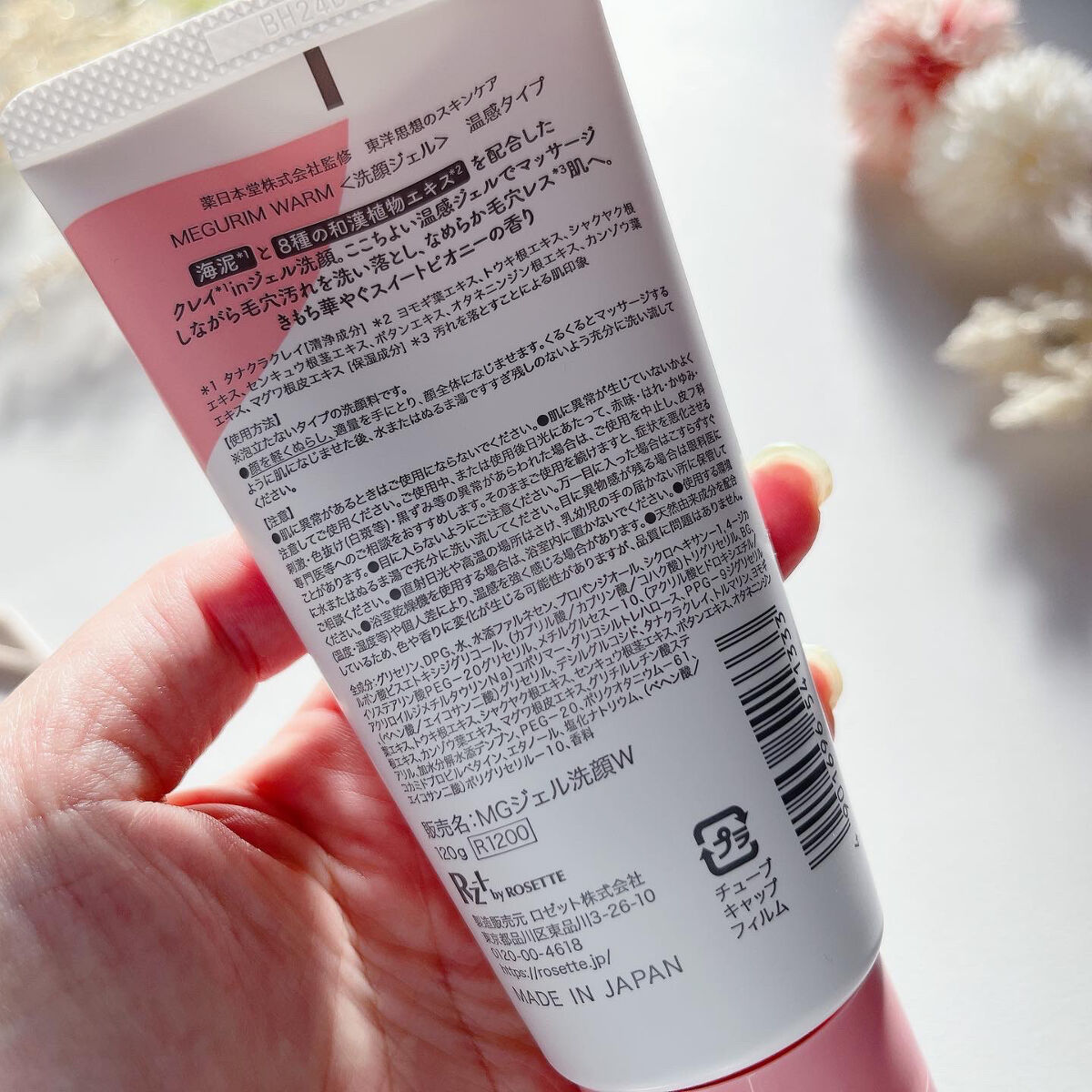 【MEGURIM RELAX ジェル洗顔】白泥配合公式によると「ゆらぎ肌」向けだそう。黄色のパッケージのやつ!です。香りは柑橘系🍊 【MEGURIM WARM ジェル洗顔】海泥配合公式によると「毛穴対策」。ピンクのです。ウォームの名前通り温感タイプで、これは唯一パケ裏に「顔を軽く塗らしてから使ってね」という旨の注意書きがしてあります。 【MEGURIM FLOW ジェル洗顔】ガスール配合公式だと「くすみ対策」ってなってるグリーンのフロウ。三つの中で唯一スクラブが入っています。