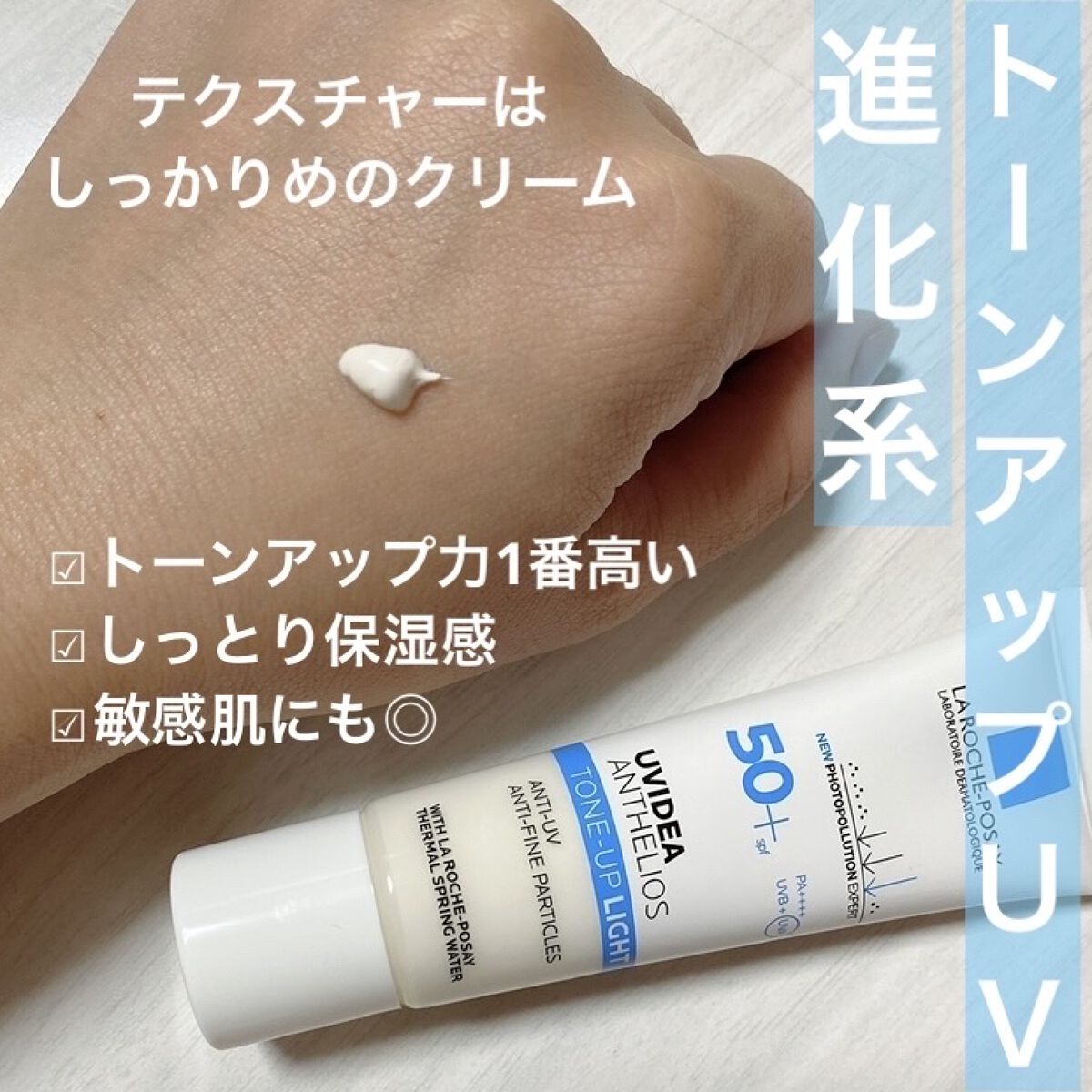 - トーンアップUVでくすまない透明感肌(*2) 光を乱反射し、肌を綺麗に魅せるトーンアップテクノロジーを採用。 くすみや色むらなど、気になる肌悩みを自然にカバーし、光のヴェールを纏っているような自然で上品なツヤ感を演出します。 SPF50+・PA++++の防御力で紫外線はもちろん、PM2.5を含む大気中微粒子(*3)などの外的要因からも肌を守る独自のマルチプロテクションテクノロジーを搭載。 さらにエイジングケア(*4)を考えたスキンケア成分や、肌をやわらげ、肌本来のバリア機能(角層)をサポートする、ラ ロッシュ ポゼ ターマルウォーター(整肌成分)配合。 石鹸で落とせます。 ●パラベンフリー ●無香料 ●アレルギーテスト済み*5 ●ニキビのもとになりにくい処方*6 *2 メイクアップ効果による *3 物理的な肌の付着からの防御。すべての大気中物質をさすわけではありません *4 年齢に応じたうるおいを与えるケア *5 すべての人にアレルギーがおきないわけではありません *6 すべての人にニキビのもとができないわけではありません