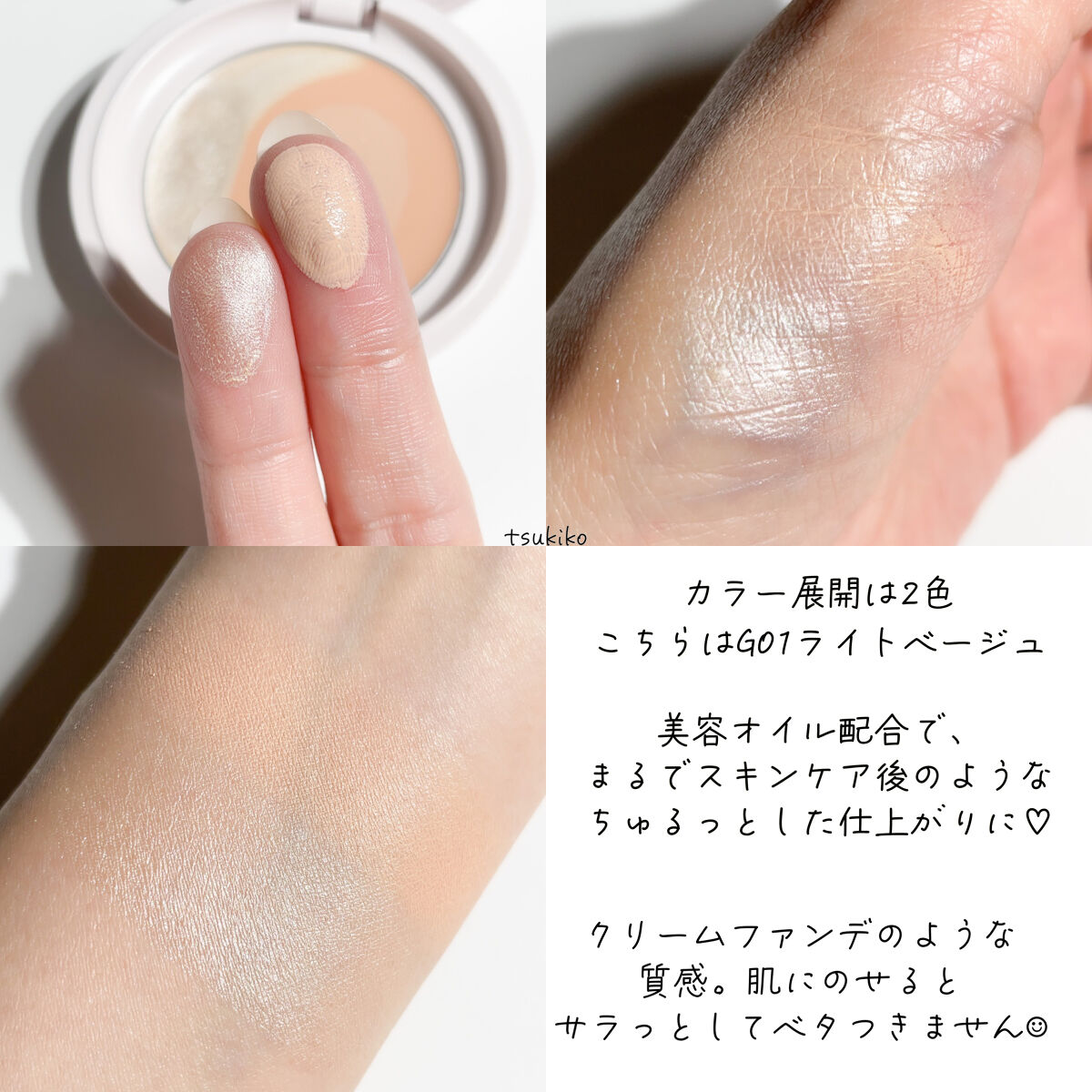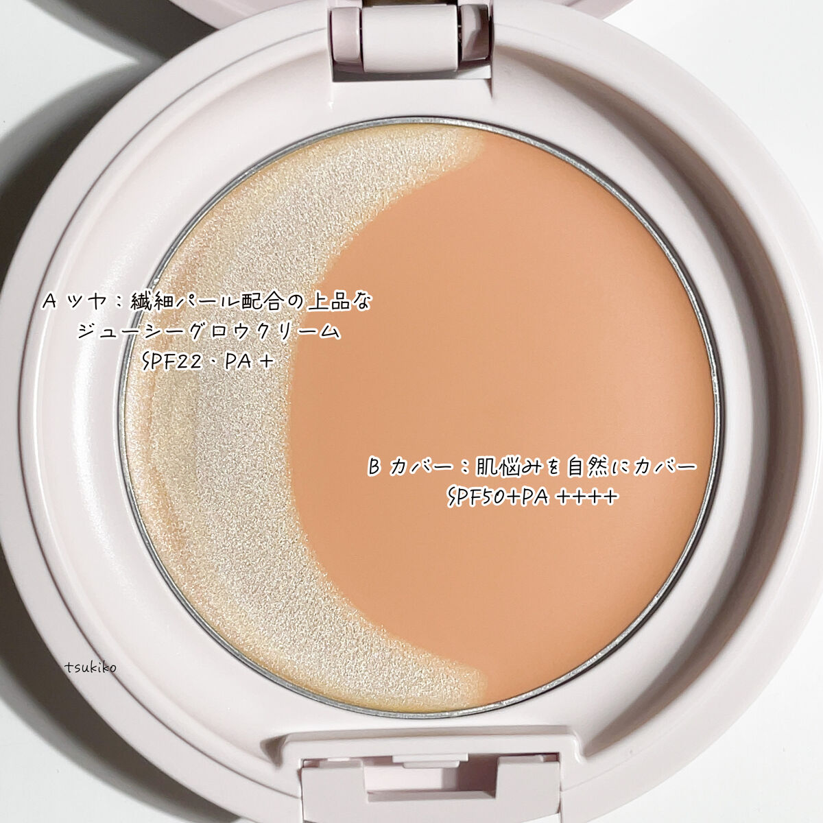 - ツヤとカバーの2種のベースが1つになった 2in1ツヤ肌パクト 繊細な白パールをたっぷり配合した上品なジューシーグロウクリームと パール無配合で肌悩みを自然にカバーするナチュラルカバーファンデーションの、2in1構造! ツヤを好きなだけ自由にのせて、自分好みのツヤ肌を叶えてください♡ 美容オイル配合で、まるでスキンケアしたてのようなちゅるちゅるお肌が続きます。