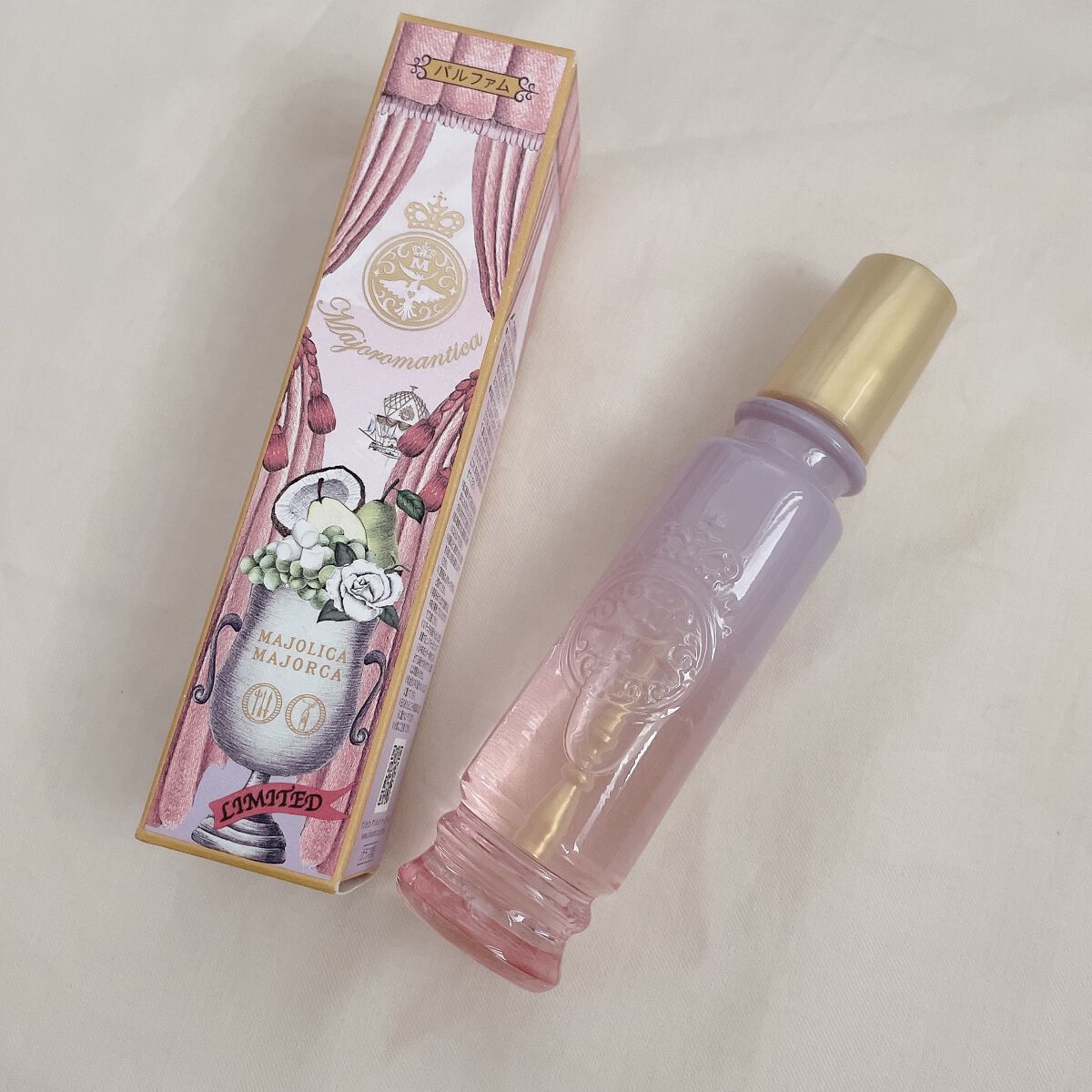 マジョリカマジョルカの大人気フレグランス! 限定のマジョロマンティカ3種をそれぞれ一滴ずつ組み合わせてみたよ! 濃厚なベリージャムがマシュマロに包まれるような甘く優しい香り。 優しい甘さと華やかな香り。どの香りもどの組み合わせもいい香り〜