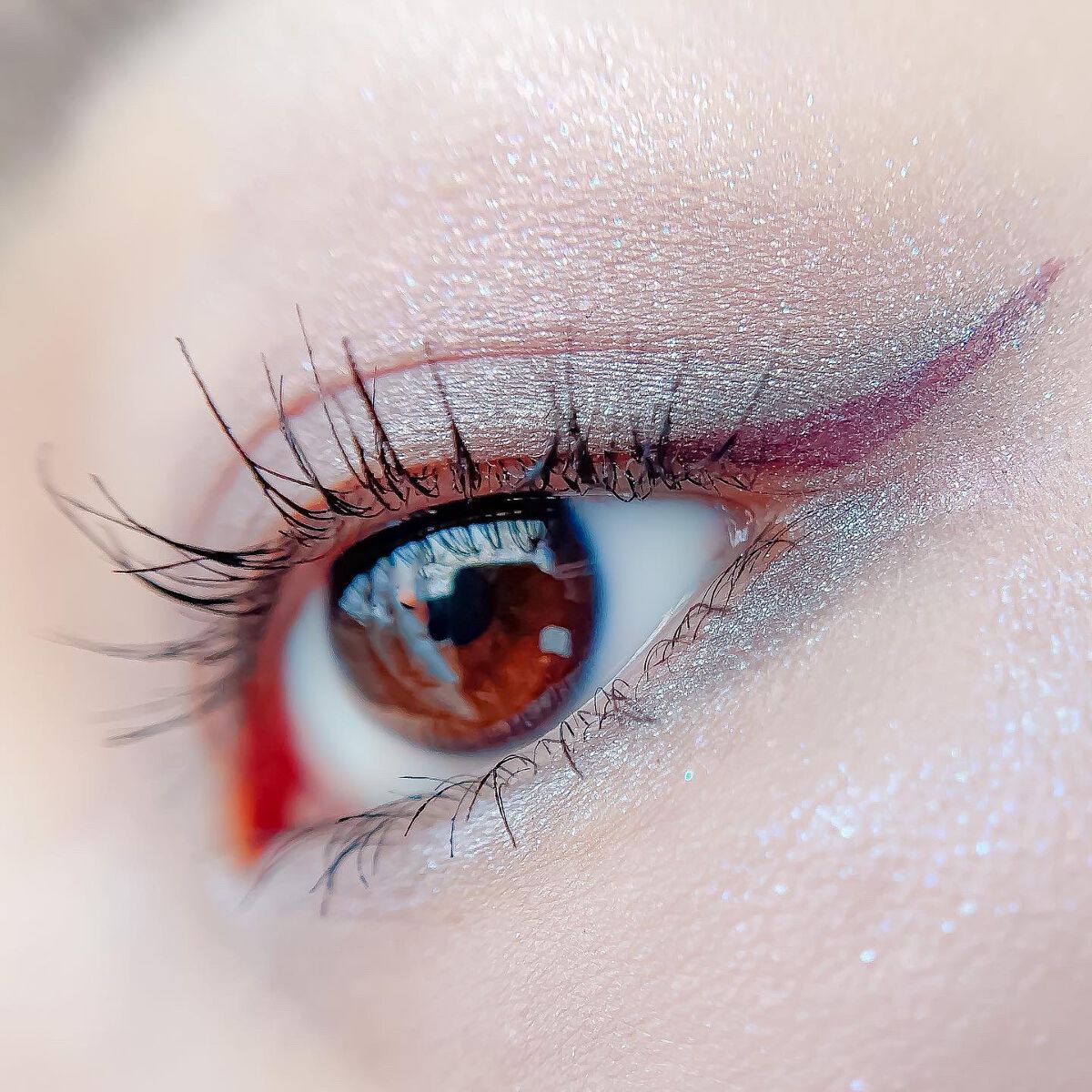 ピンクにグレージュも良いですね👌💗 今日は可愛らしい感じにしてみました💕 上下瞼黒目〜目頭側にラメを塗ってキラキラさせております🤩 目尻はマットのピンクを濃いめに重ねて💗 グレージュのアイライナーと相性◎