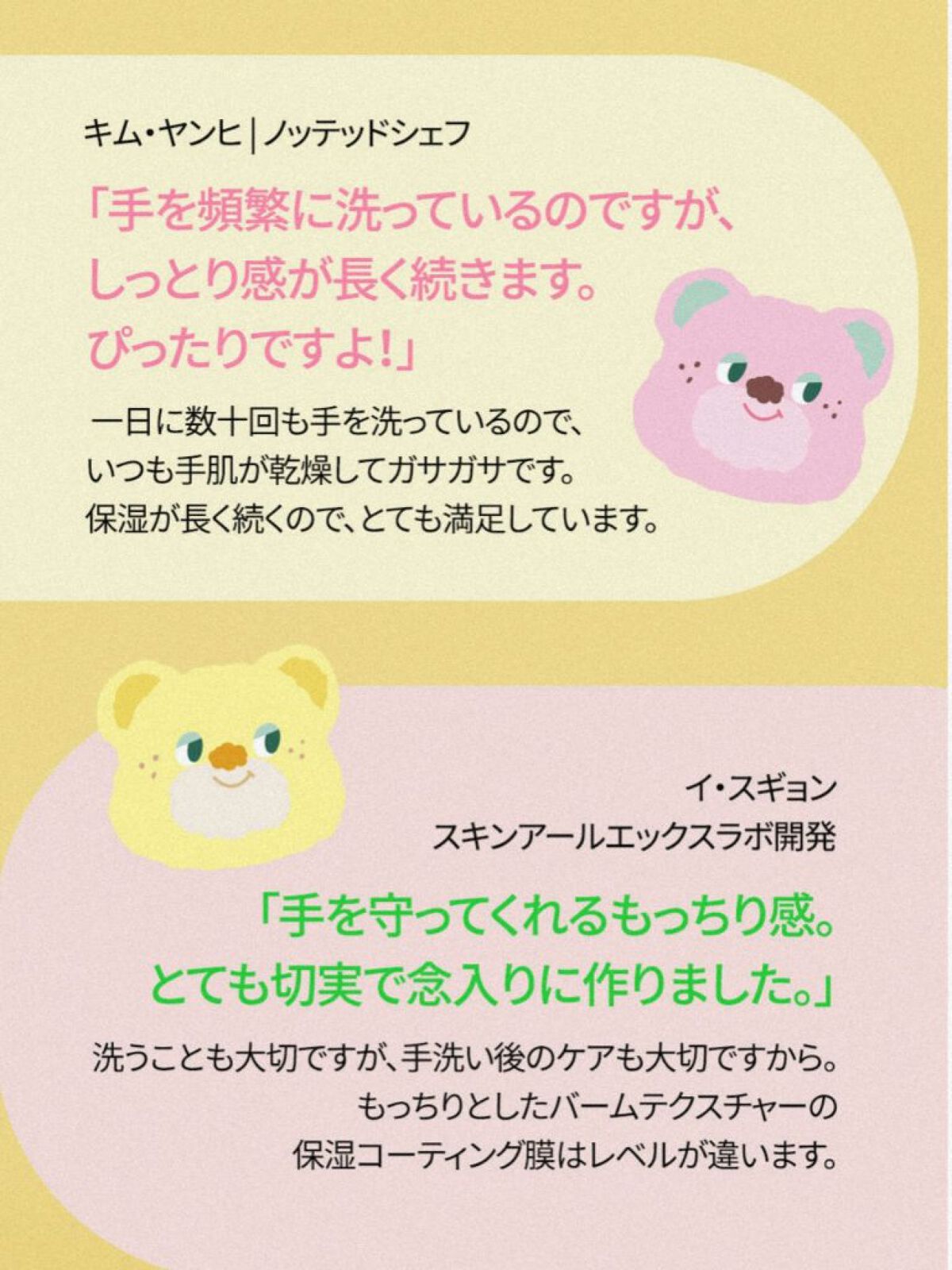 - #高保湿ハンドバーム #香り付きハンドクリーム パステルトーンカラーのPOPなパッケージは、韓国の有名ドーナツショップ「Café Knotted」とのコラボレーションアイテム。シアバター*100,000ppm配合で、高い保湿性があるのにベタつかない仕上がり。手や体にも使用可能。ほのかな花の香りとさわやかなシトラスの香りのバランスで、ぜひ気分転換リフレッシュしてください!*保湿成分