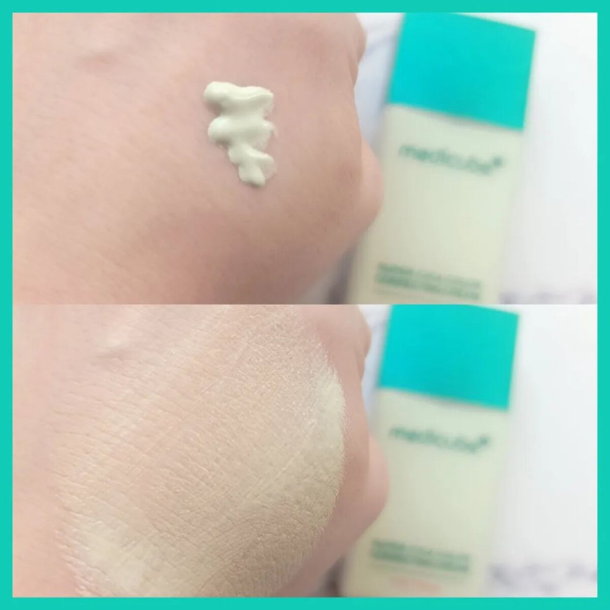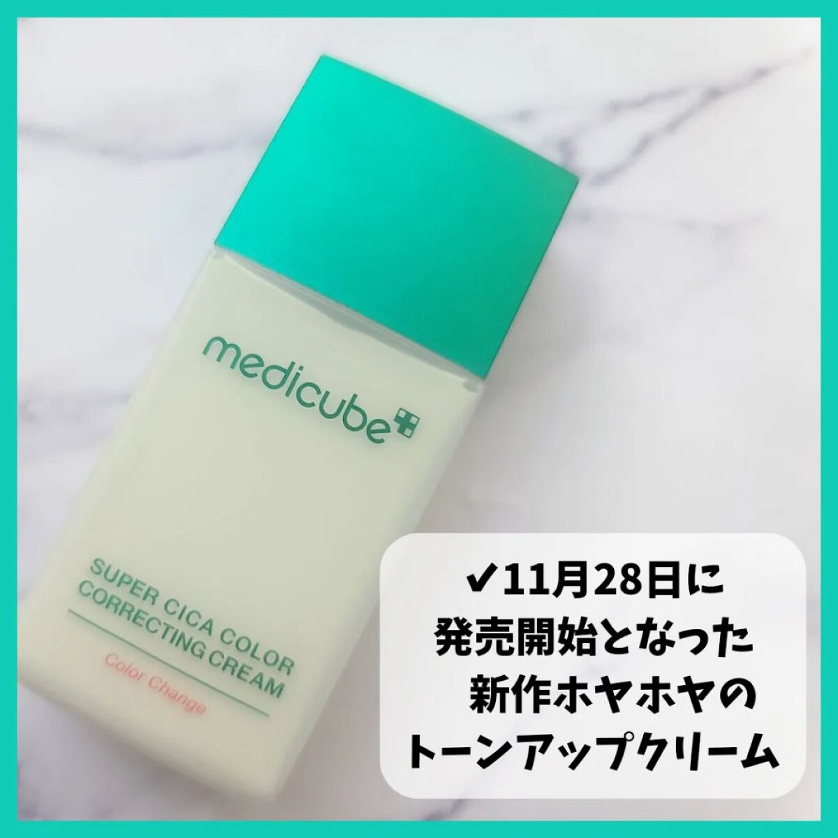 - 整肌とニキビ跡のカバーが同時に出来るトーンアップ下地です。 ツボクサエキス*とメディキューブ独自開発のスーパーシカ7種*が含まれており、肌に優しい使い心地のメイク下地で、しっとりしつつ、密着力もあるので、マスクにつきにくい! 最初は緑色のテクスチャーですが、肌に塗ると自然なベージュ色に変わり、肌馴染みが良いです! *整肌成分