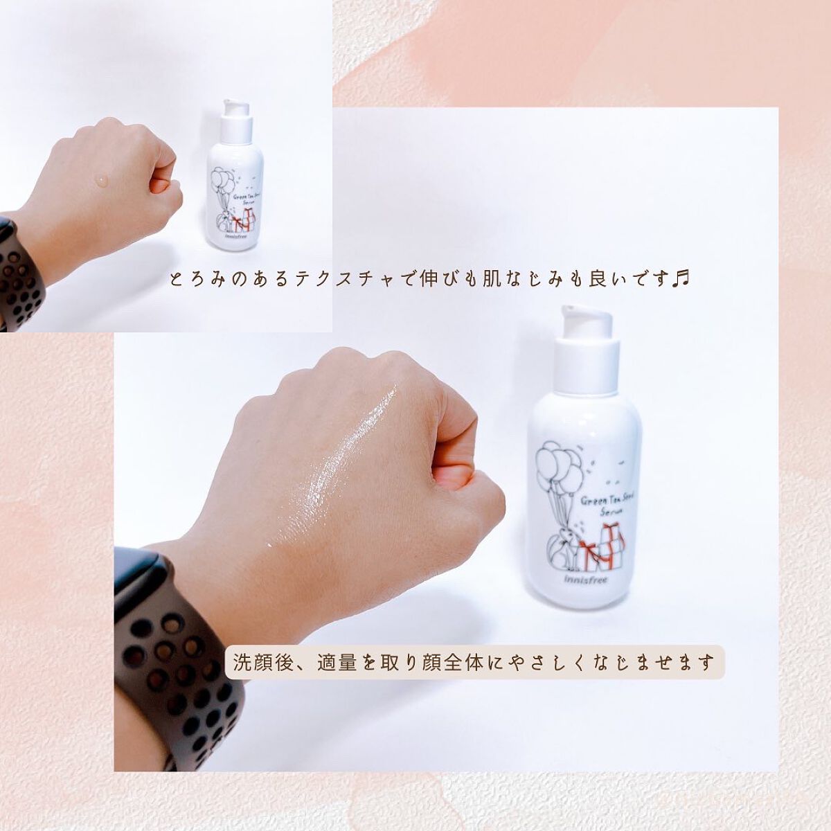 PDRNとは、サーモン注射の主成分として知られています。自社農園で栽培した緑茶由来のヴィーガンPDRNを水の代わりに採用していて美容成分が80%以上と、高濃度に配合! とろみがあり、みずみずしくにゆるりと伸びが良いでもっちりと保湿感を感じる仕上がり! イニスフリーの人気商品をライン使いできるようなお得なセットになってます。
