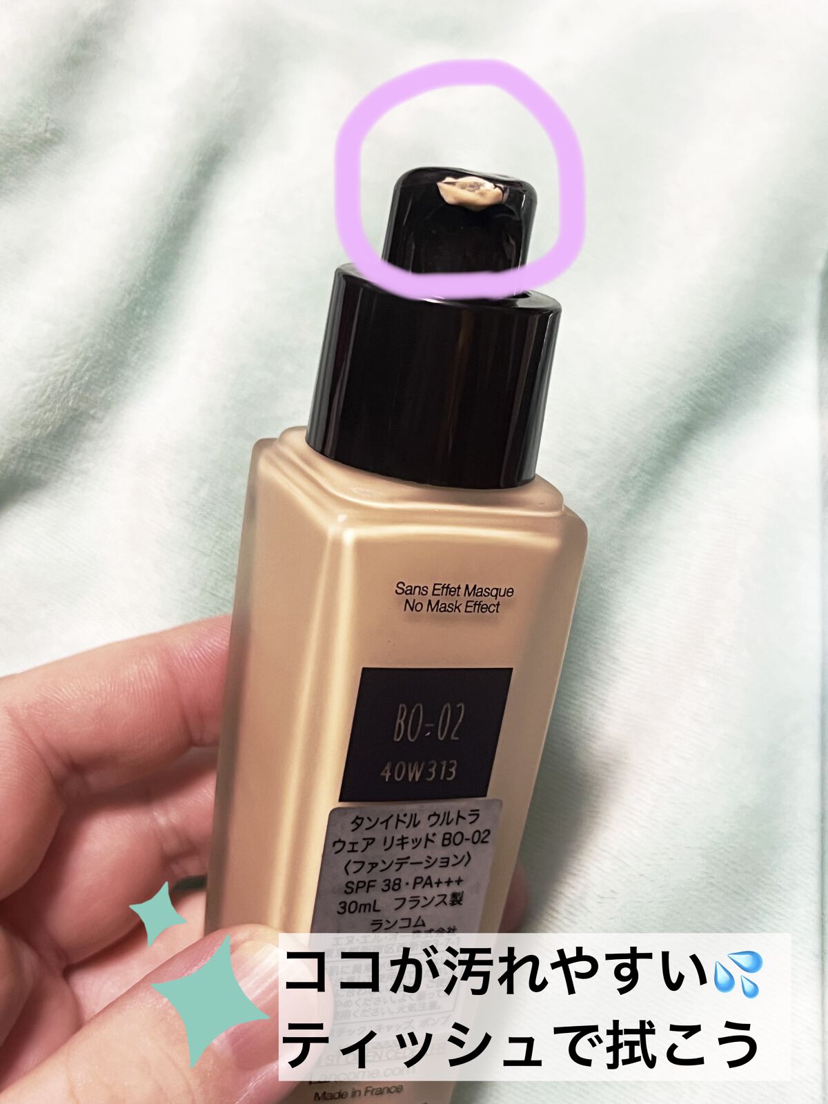 セミマット仕上がりが美しい!ランコムのファンデーション💄✨ 肌に溶け込むような自然な仕上がりで、毛穴や赤みをしっかりカバーしつつ厚塗り感ゼロ👌 少量でも伸びが良く、半プッシュで全顔いけるほど! 乾きが速いので、半顔ずつ仕上げるのがおすすめです。 BO-02は黄みが強めのベージュで、赤みが気になる肌にも自然に馴染みますが、少し暗めなので普段のファンデよりワントーン明るめを選ぶと良さそうです。