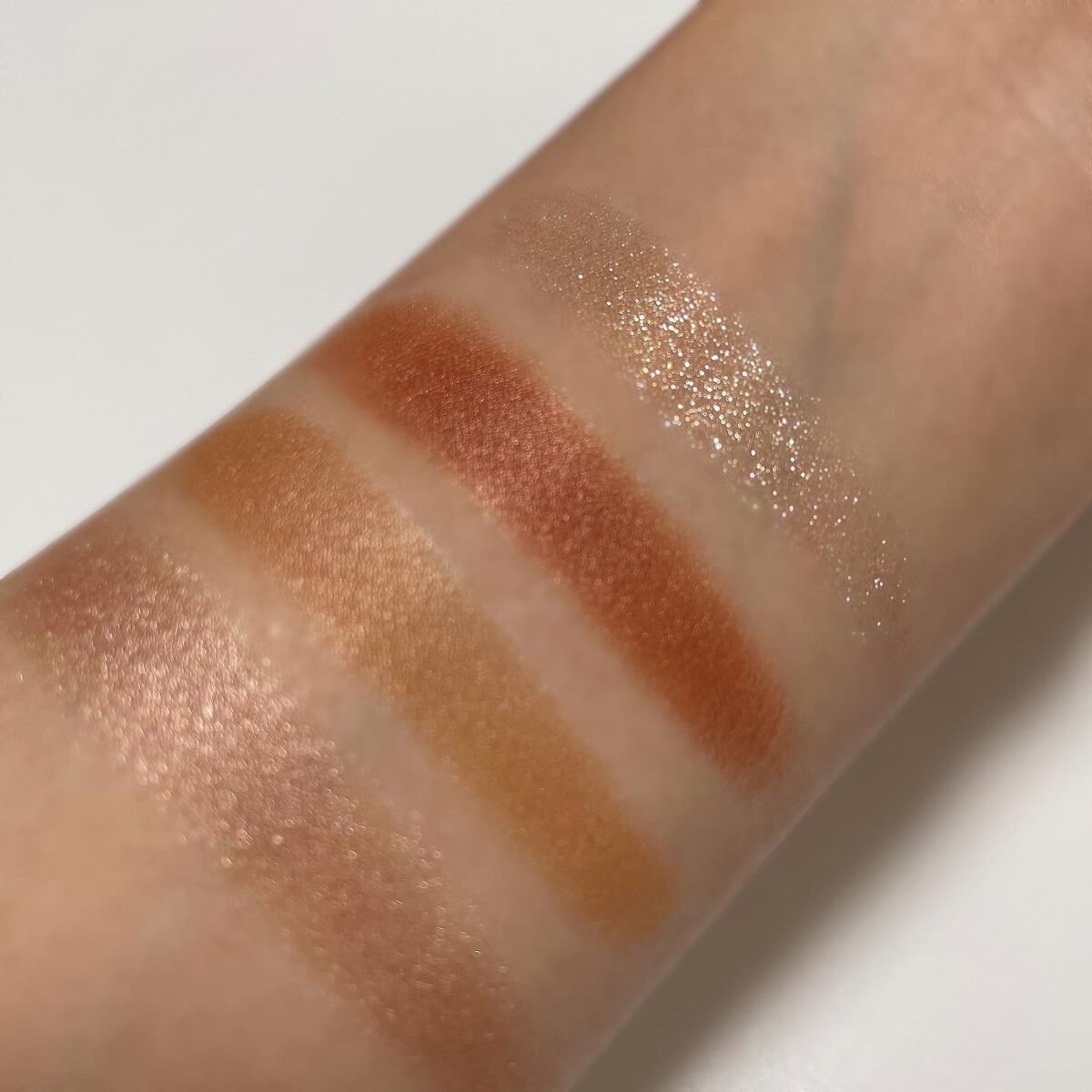 ¥300〜の展開でびっくりするくらい安いの😱❤️!! 500円なのに粉がやわらかくしっとりしています。 ラメは中国コスメならではの粒感とギラギラ感!すんごく綺麗です😍❤️❤️ ただ、ラメは飛びやすいイメージなのでアイシャドウベースつかったり筆を気持ち濡らしてから使うといいかも! 01ビスクシュシュ 02ラフィネボルドー 10シュルクマロン 迷ったら01か10が使いやすいかも✨!わたしは10推し!🥰 スウォッチしたので参考にしていただけたら嬉しいです❣️