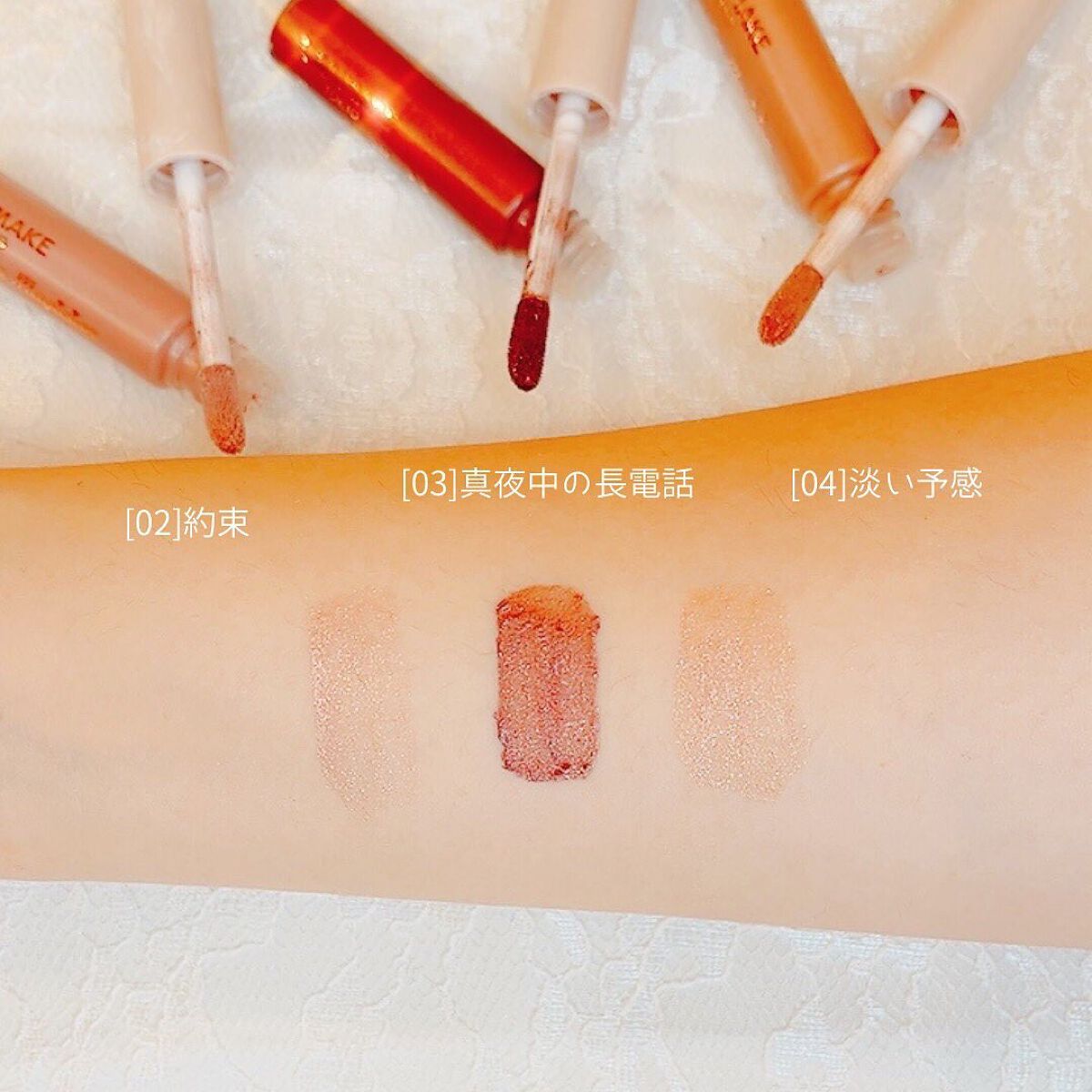 - リッチな輝きが長時間続く サラサラ仕上げのリキッドアイシャドウ 塗り心地はみずみずしくなめらかなのに、伸ばしていくうちにサラサラに変わる 魔法みたいなリキッドアイシャドウ♡ 速乾だからヨレにくく、ふたえのラインにたまりにくい! リキッドアイシャドウならではの輝きが長時間続きます。