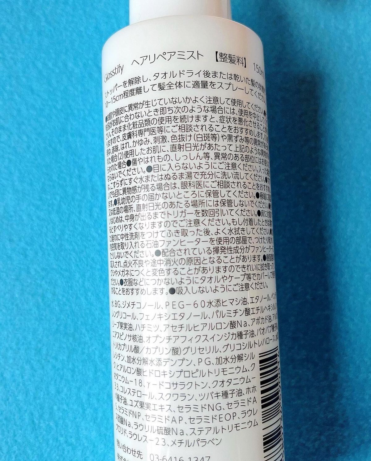 GlosstifySmoothヘアミストスプレー提供頂き初めて使わせて頂きました!補修、潤い、保護、ツヤ、日光ケアまでしてくれてスプレータイプだから使いやすくて凄く良かった!インバスケアでスプレータイプは初めてだったけど、スペシャルケアとして...