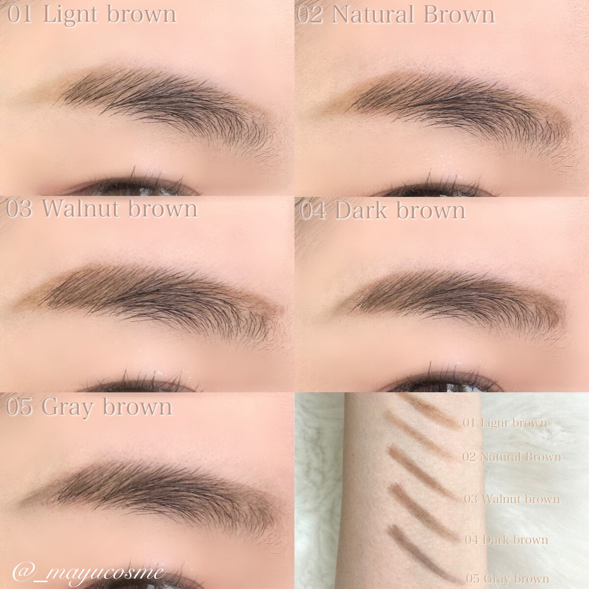 細く細く、自由自在に描ける楕円型スリムブロウ。 一本一本繊細に描けるので扱いやすい✌️ 洗練されたアッシュブラウンで落ち着いた印象に仕上がるのが好み。元の眉毛の色や量とも相性が良く、めちゃくちゃ自然な眉毛がかけるのが嬉しい!! ちゃんと色付いてくれるし、これは大当たりすぎる✨️