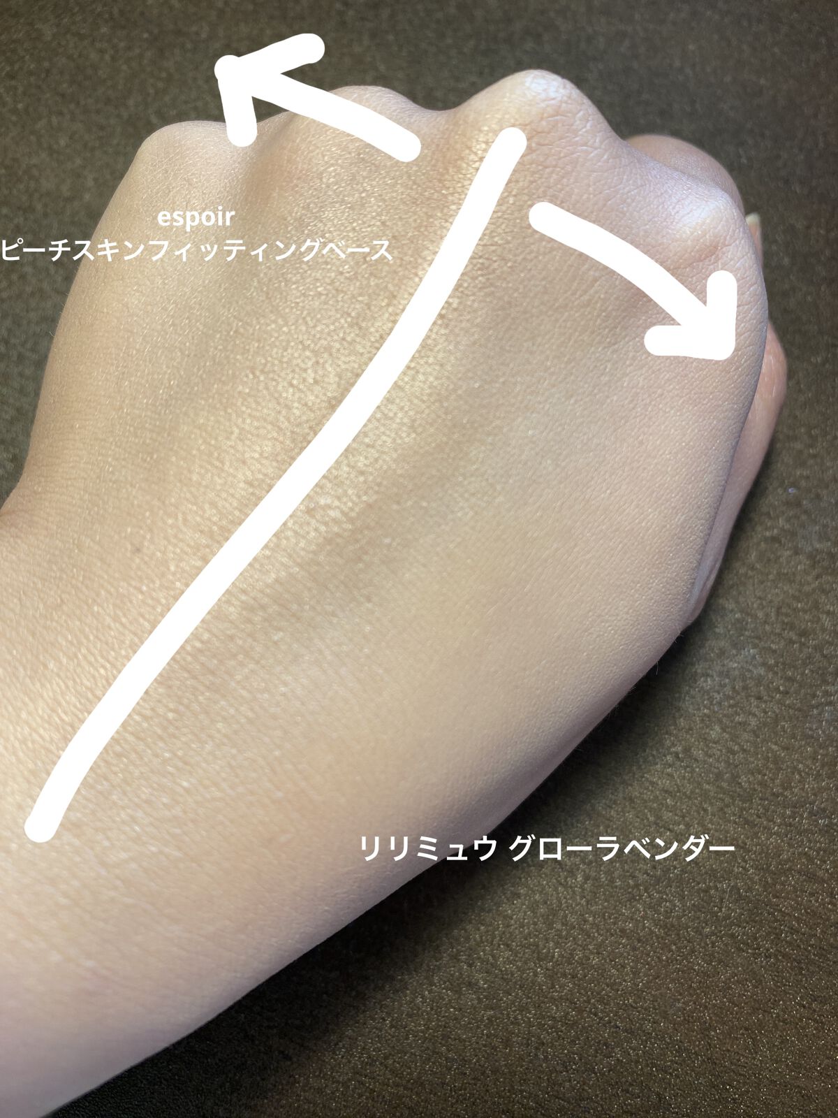 ピンクベージュ系の色で、かなりキラッキラしています。 ピンクみのあるベージュ系のツヤ下地ということで、ロージー グロウライザーと似た雰囲気かな?と思いましたが、腕に出した液をみるとこっちのが見るからにパール入ってます!感があります。リキッドアイシャドウとかっぽい見た目というか。キラキラ加減がジルの白下地と同じくらいかも? 白でキラッキラツヤツヤの下地! 3種の中ではキラキラツヤツヤ度が1番高い気がしますが、この下地の他のカラーはここまでではないようです。(その代わり?他はカラーコントロール効果あり) ピンクも入ってて血色感も出つつ、上品なパールとツヤでさすが人気な下地~!という印象。