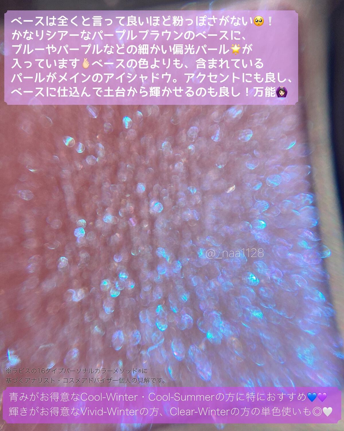 | 単色アイシャドウランキング第5位 | 高密度の多色ラメとクリアパープルが繊細に輝いて、目もとが一気に華やぐ印象でした💎 | 詳細を見る | |