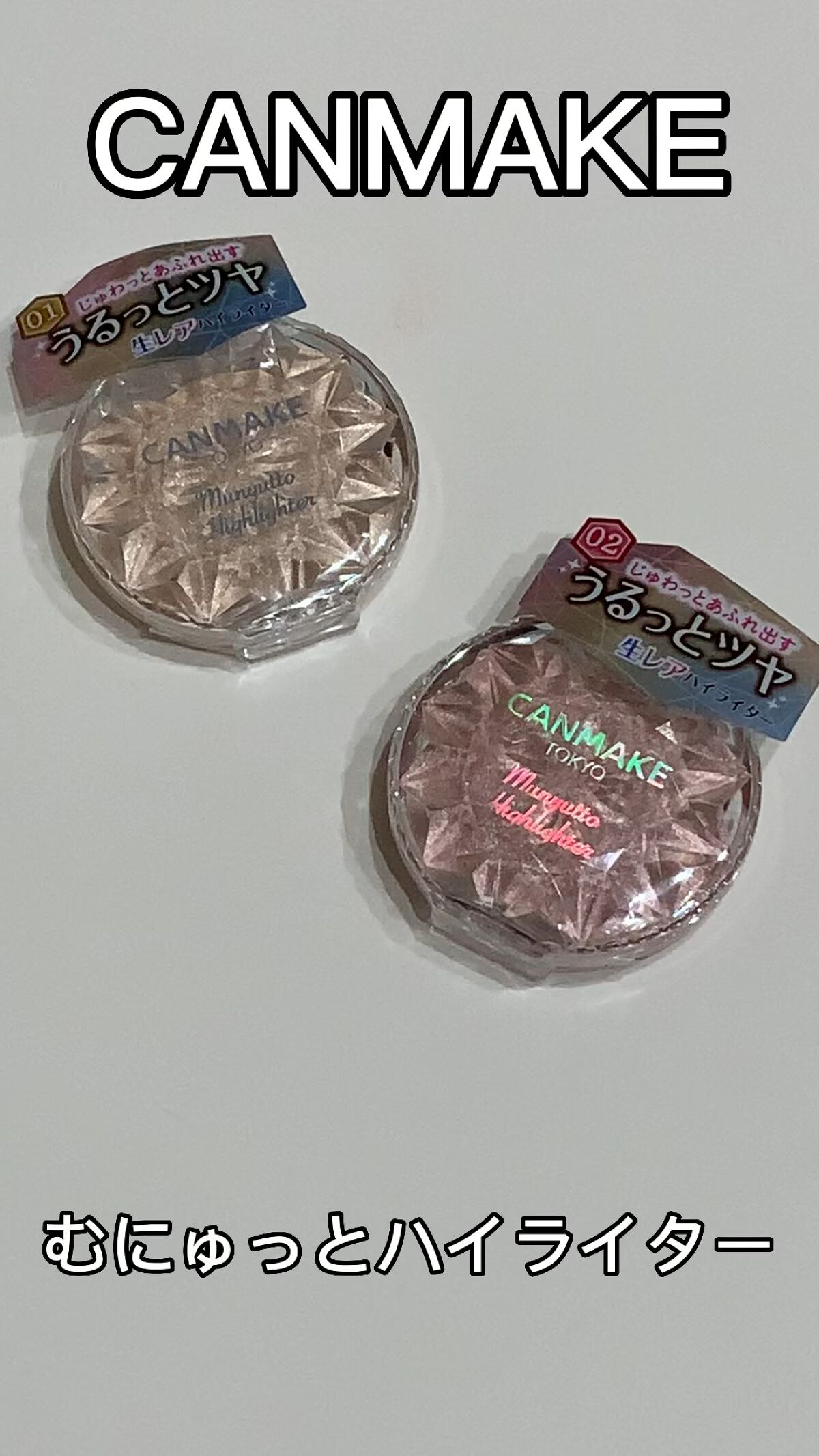 キャンメイクむにゅっとハイライター02ローズクォーツ¥638キャンメイクから出てるハイライトで、すごく柔らかい。ほんとに、むにゅっとしてる。クリームハイライトで名前の通りむにゅっとした質感だけど、塗るとサラサラに。ピンクがかったパールがとても...
