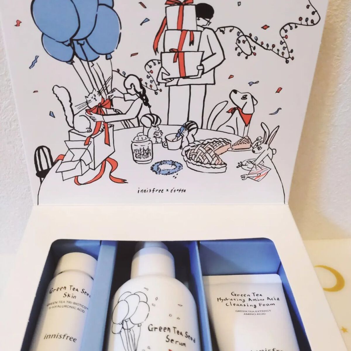 2024年11月より数量限定で発売しているよ🎄 パケも可愛いぃぃ♡ イニスフリーのスキンケアは何回も使ってるけどわたしには合ってるみたいで好き🤍 塗り心地も好きだし、ビタミン系だし明るい肌になるといいなぁと思って使います!!