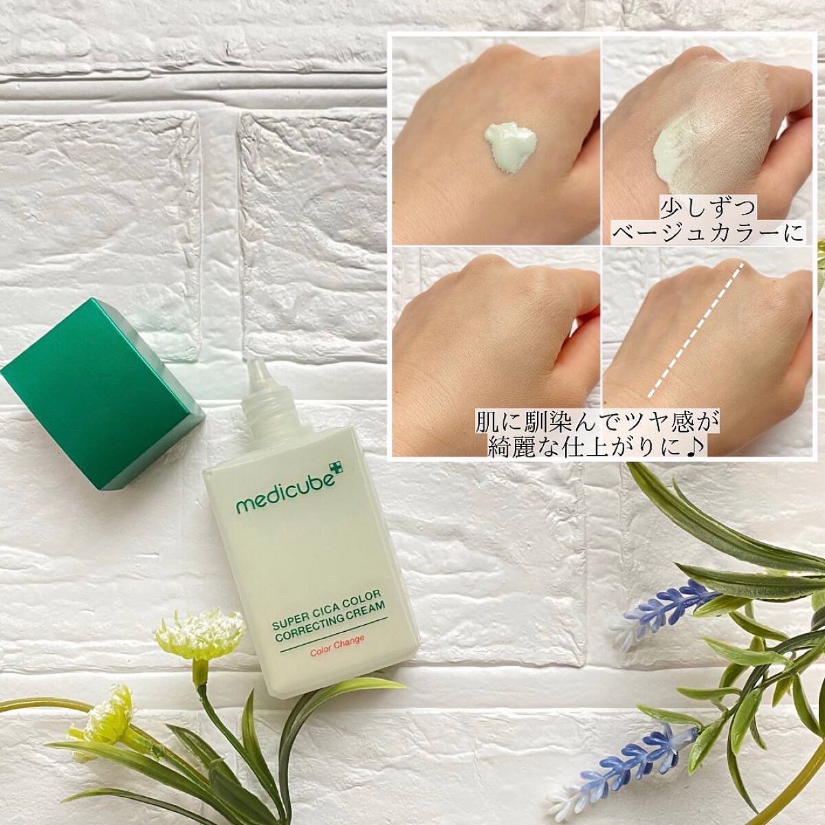 - 整肌とニキビ跡のカバーが同時に出来るトーンアップ下地です。 ツボクサエキス*とメディキューブ独自開発のスーパーシカ7種*が含まれており、肌に優しい使い心地のメイク下地で、しっとりしつつ、密着力もあるので、マスクにつきにくい! 最初は緑色のテクスチャーですが、肌に塗ると自然なベージュ色に変わり、肌馴染みが良いです! *整肌成分