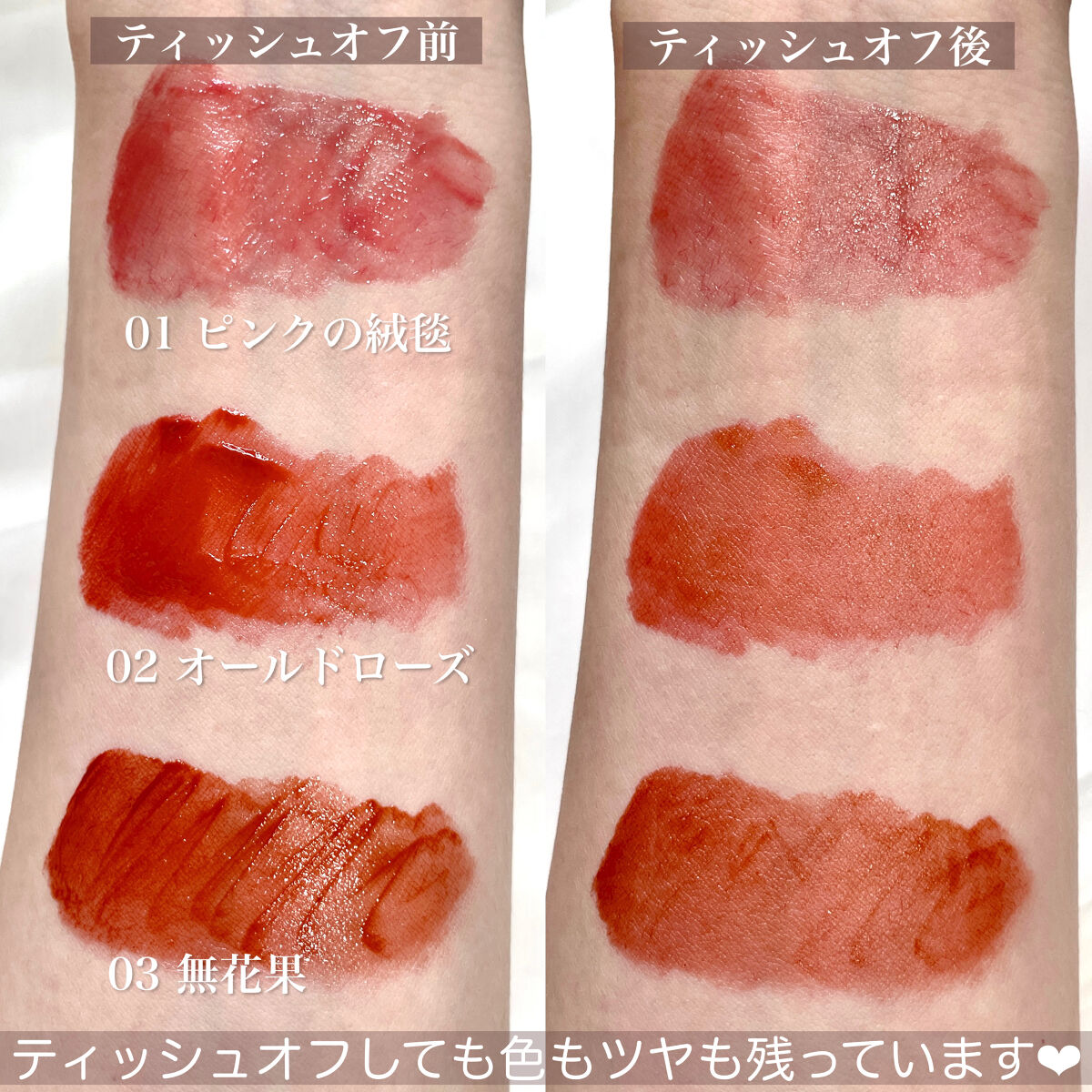 ジルのリップブロッサムのパケは本当に可愛いので持っているだけでテンションが上がる!! 少し青みのあるバーガンディーが本当に可愛い💓 赤みのあるブラウンリップなのでブルベさんにも似合うブラウン! 絶妙な色がさすがトム様。 ブルベさんでもイエベさんでも似合うブラウンです! セミマットよりのテクスチャーです。 唇の立体感がない私でも塗るだけでちゅるんとしたぷっくり唇に🥺✨ 透け感のある赤なので他のリップの上に重ねても可愛い💕 ほんっっっとに色味が最高なんです🥺 透け感のある絶妙な赤が唇を綺麗に見せてくれます! 赤みのあるブラウンがとても可愛い💓 どちらかというと血豆みたいな色です、、笑 ブルベさんでもイエベさんでも似合うピンク寄りのローズブラウン。 塗るだけで唇がオシャレに✨ 血色感のある色が本当に可愛いです💓 ティントタイプのリップで色が落ちないし、色持ちもいいです✨
