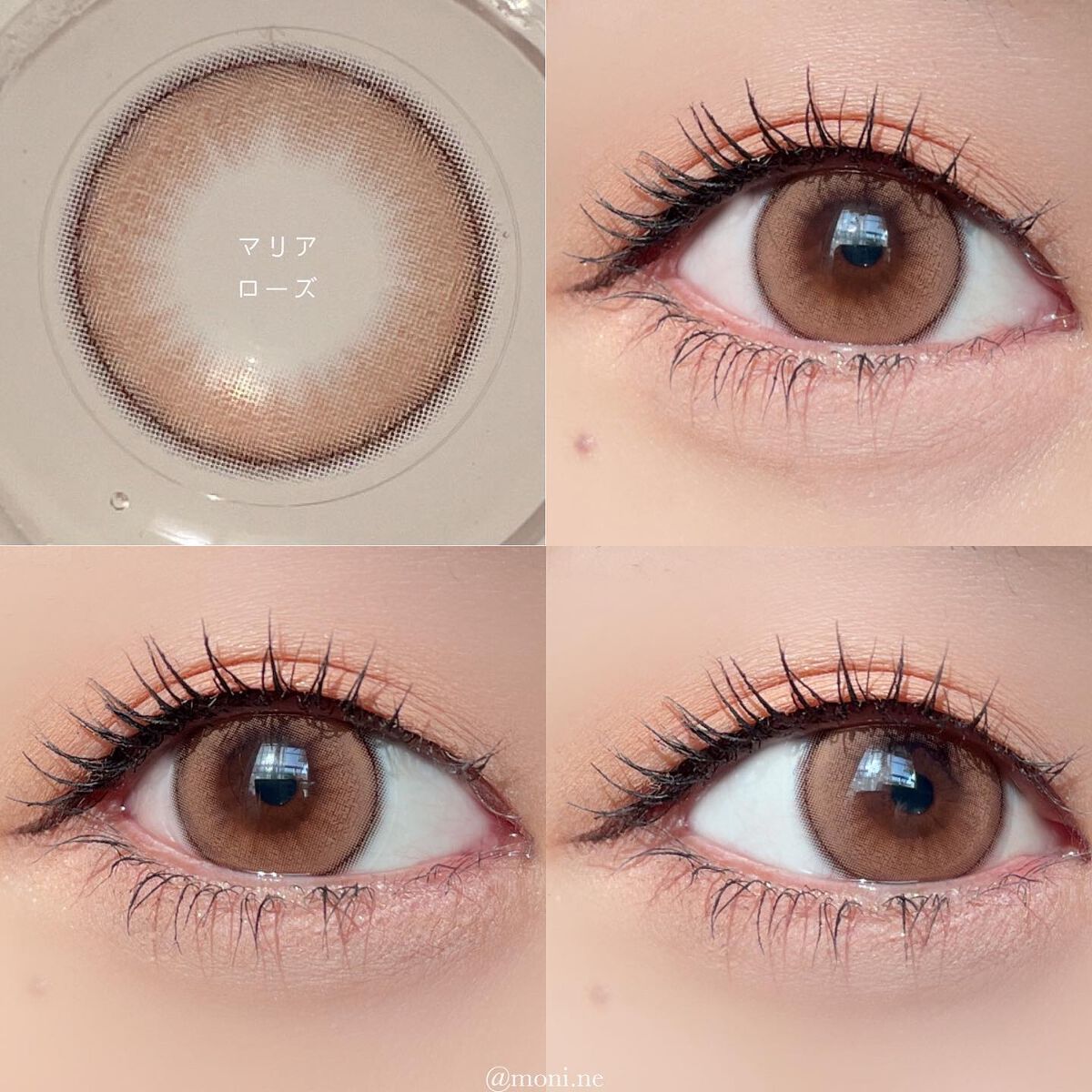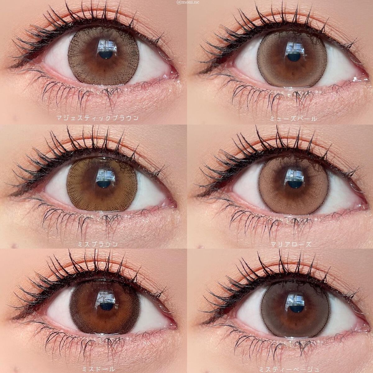 着色直径13.8mmの大きめカラコン🥺 清楚に盛れる、ブラウン系のモアドールとローズピンク系のマリアージュブラウン💓 しっかり太めのフチだからしっかり盛れるんだけど、日常使いしても派手すぎない瞳を演出できるよ🫧 瞳の緊張状態も和らげてくれる次世代カラコン。機能性、着け心地も優れているし、PCやスマホの長時間使用時の目の負担も軽減してくれる。