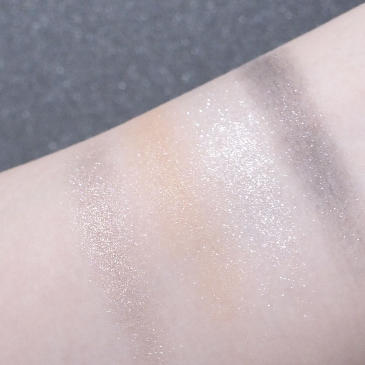 オールマットの上段と チラチラとした細かいラメがぎゅっと詰まった下段 特に真ん中のマットはブラシでとって まぶた全体にふわっとのせると ちょうど良い陰影になって可愛い〜😚 でもSNIDELの細かくドライ目の粉は 乱雑にのせると、ぶわっと舞うので ちゃんろみみたいなガサツ人間は 指塗りの方が良いのかも〜🤣🤣🤣