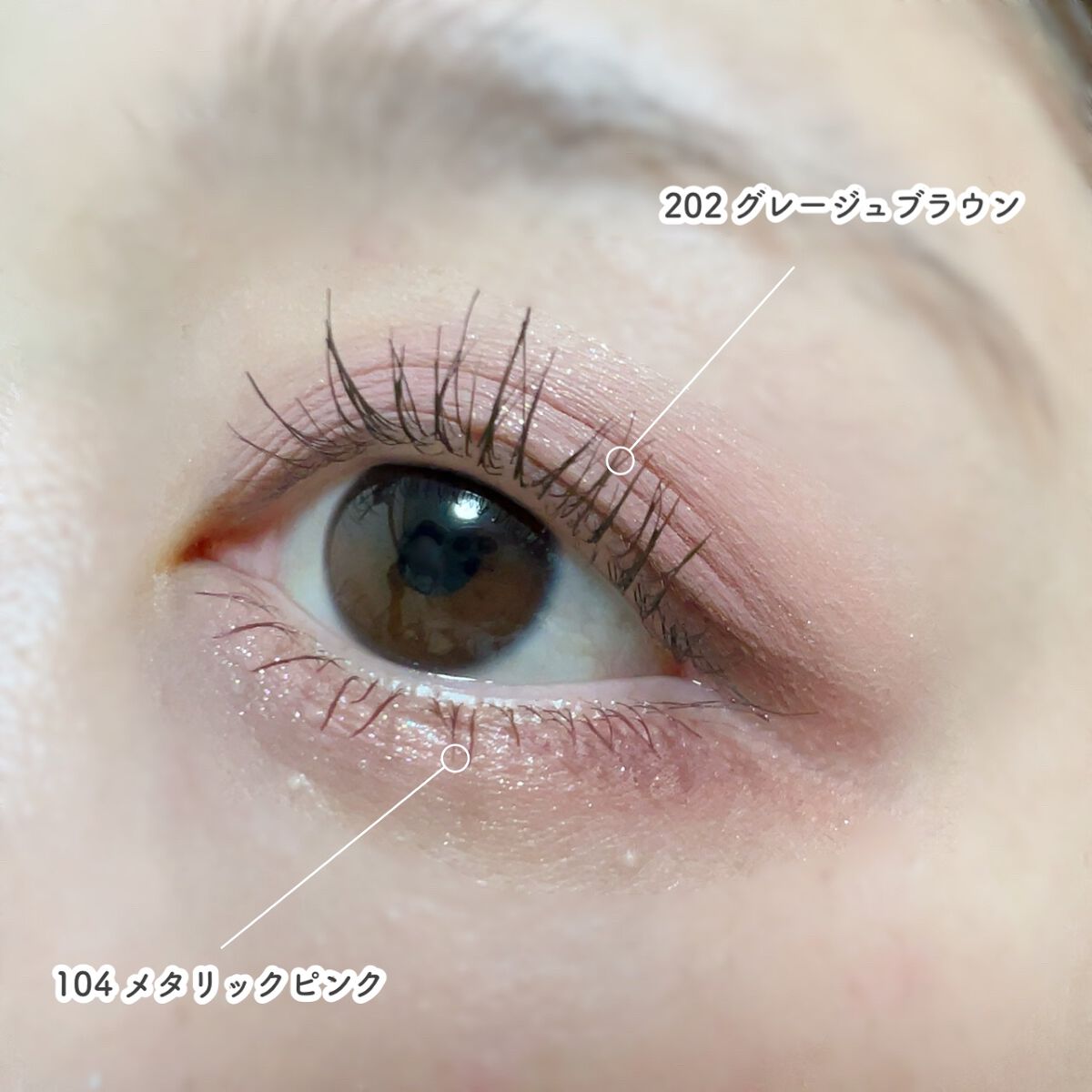 - <101 メタリックブロンズ> 水、(アクリレーツ/アクリル酸エチルヘキシル)コポリマー、BG、ミツロウ、カルナウバロウ、ステアリン酸、シリカ、TEA、PVP、ジフェニルシロキシフェニルトリメチコン、ステアリン酸ソルビタン、パルミチン酸、ワセリン、(HDI/トリメチロールヘキシルラクトン)クロスポリマー、ジメチコン、ポリソルベート60、ミリスチン酸、ラウレス-21、フェノキシエタノール、エチルヘキシルグリセリン、メチルパラベン、ヒドロキシエチルセルロース、トコフェロール、パンテノール、グリセリン、加水分解コラーゲン、PCA-Na、乳酸Na、ヒアルロン酸Na、リンゴ果実培養細胞エキス、アルギニン、アスパラギン酸、PCA、ローズマリー葉エキス、ビワ葉エキス、マグワ根皮エキス、グリシン、アラニン、キサンタンガム、センチフォリアバラ花エキス、ブドウ葉エキス、加水分解コンキオリン、セリン、ノイバラ果実エキス、バリン、イソロイシン、トレオニン、プロリン、ヒスチジン、フェニルアラニン、レシチン、ユズ果実エキス、ビオチノイルトリペプチド-1、酸化鉄、Al、マイカ、タルク <102 メタリックゴールド> 水、(アクリレーツ/アクリル酸エチルヘキシル)コポリマー、BG、ミツロウ、カルナウバロウ、ステアリン酸、シリカ、TEA、PVP、ジフェニルシロキシフェニルトリメチコン、ステアリン酸ソルビタン、パルミチン酸、ワセリン、(HDI/トリメチロールヘキシルラクトン)クロスポリマー、ジメチコン、ポリソルベート60、ミリスチン酸、ラウレス-21、フェノキシエタノール、エチルヘキシルグリセリン、メチルパラベン、ヒドロキシエチルセルロース、トコフェロール、パンテノール、グリセリン、加水分解コラーゲン、PCA-Na、乳酸Na、ヒアルロン酸Na、リンゴ果実培養細胞エキス、アルギニン、アスパラギン酸、PCA、ローズマリー葉エキス、ビワ葉エキス、マグワ根皮エキス、グリシン、アラニン、キサンタンガム、センチフォリアバラ花エキス、ブドウ葉エキス、加水分解コンキオリン、セリン、ノイバラ果実エキス、バリン、イソロイシン、トレオニン、プロリン、ヒスチジン、フェニルアラニン、レシチン、ユズ果実エキス、ビオチノイルトリペプチド-1、Al、マイカ、酸化鉄、タルク、酸化チタン <103 メタリックエメラルド> 水、(アクリレーツ/アクリル酸エチルヘキシル)コポリマー、BG、ミツロウ、カルナウバロウ、ステアリン酸、シリカ、TEA、PVP、ジフェニルシロキシフェニルトリメチコン、ステアリン酸ソルビタン、パルミチン酸、ワセリン、(HDI/トリメチロールヘキシルラクトン)クロスポリマー、ジメチコン、ポリソルベート60、ミリスチン酸、ラウレス-21、フェノキシエタノール、エチルヘキシルグリセリン、メチルパラベン、ヒドロキシエチルセルロース、トコフェロール、パンテノール、グリセリン、加水分解コラーゲン、PCA-Na、乳酸Na、ヒアルロン酸Na、リンゴ果実培養細胞エキス、アルギニン、アスパラギン酸、PCA、ローズマリー葉エキス、ビワ葉エキス、マグワ根皮エキス、グリシン、アラニン、キサンタンガム、センチフォリアバラ花エキス、ブドウ葉エキス、加水分解コンキオリン、セリン、ノイバラ果実エキス、バリン、イソロイシン、トレオニン、プロリン、ヒスチジン、フェニルアラニン、レシチン、ユズ果実エキス、ビオチノイルトリペプチド-1、Al、水酸化クロム、銀、グンジョウ、マイカ、タルク、酸化鉄、酸化スズ <104 メタリックピンク> 水、(アクリレーツ/アクリル酸エチルヘキシル)コポリマー、BG、ミツロウ、カルナウバロウ、ステアリン酸、TEA、PVP、ジフェニルシロキシフェニルトリメチコン、ステアリン酸ソルビタン、パルミチン酸、ワセリン、(HDI/トリメチロールヘキシルラクトン)クロスポリマー、ジメチコン、ポリソルベート60、ミリスチン酸、ラウレス-21、フェノキシエタノール、エチルヘキシルグリセリン、メチルパラベン、ヒドロキシエチルセルロース、トコフェロール、パンテノール、グリセリン、加水分解コラーゲン、PCA-Na、乳酸Na、ヒアルロン酸Na、リンゴ果実培養細胞エキス、アルギニン、アスパラギン酸、PCA、ローズマリー葉エキス、ビワ葉エキス、マグワ根皮エキス、グリシン、アラニン、キサンタンガム、センチフォリアバラ花エキス、ブドウ葉エキス、加水分解コンキオリン、セリン、ノイバラ果実エキス、バリン、イソロイシン、トレオニン、プロリン、ヒスチジン、フェニルアラニン、レシチン、ユズ果実エキス、ビオチノイルトリペプチド-1、合成フルオロフロゴパイト、シリカ、マイカ、タルク、酸化鉄、酸化チタン、AI、銀、水酸化AI、グンジョウ、赤226、酸化スズ <201 ブルージュブラック> 水、(アクリレーツ/アクリル酸エチルヘキシル)コポリマー、BG、ミツロウ、カルナウバロウ、ステアリン酸、TEA、PVP、ジフェニルシロキシフェニルトリメチコン、ステアリン酸ソルビタン、パルミチン酸、ワセリン、(HDI/トリメチロールヘキ