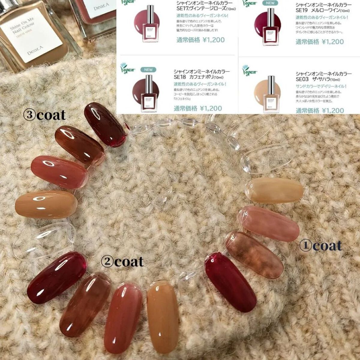 - <SE01.ハグミータイト> 酢酸ブチル、酢酸エチル、ニトロセルロース、アジピン酸/ネオペンチルグリコール/無水トリメリト酸コポリマー、クエン酸アセチルトリブチル、イソプロピルアルコ―ル、アクリル酸エステル共重合体、スチレン/アクリル酸エステル共重合体、イソ酪酸酢酸スクロース、ステアラルコニウムベントナイト、ジメチルシリル化シリカ、ジ安息香酸DPG、オクトクリレン、二酸化チタン、ポリビニルブチラール、黒酸化鉄、クエン酸、ジメチコン、赤201号、ブチルアルコール、ステアラルコニウムヘクトライト、トリメチルシロキシケイ酸 <SE02.クラッシュ> 酢酸ブチル、酢酸エチル、ニトロセルロース、アジピン酸/ネオペンチルグリコール/無水トリメリト酸コポリマー、クエン酸アセチルトリブチル、イソプロピルアルコ―ル、アクリル酸エステル共重合体、スチレン/アクリル酸エステル共重合体、イソ酪酸酢酸スクロース、ステアラルコニウムベントナイト、ジメチルシリル化シリカ、ジ安息香酸DPG、オクトクリレン、二酸化チタン、ポリビニルブチラール、黒酸化鉄、クエン酸、ジメチコン、赤201号、ブチルアルコール、ステアラルコニウムヘクトライト、トリメチルシロキシケイ酸 <SE03.ザ サハラ> 酢酸ブチル、酢酸エチル、ニトロセルロース、(アジピン酸/ネオペンチルグリコール/無水トリメリト酸)コポリマー、クエン酸アセチルトリブチル、イソプロパノール、アクリレーツコポリマー、(スチレン/アクリレーツ)コポリマー、イソ酪酸酢酸スクロース、ステアラルコニウムベントナイト、ジメチルシリル化シリカ、ジ安息香酸DPG、オクトクリレン、酸化チタン、ポリビニルブチラール、黒酸化鉄、黄4、クエン酸、ジメチコン、赤201、ブタノール、ステアラルコニウムヘクトライト、トリメチルシロキシケイ酸 <SE05.インティメイト> 酢酸ブチル、酢酸エチル、ニトロセルロース、アジピン酸/ネオペンチルグリコール/無水トリメリト酸コポリマー、クエン酸アセチルトリブチル、イソプロピルアルコ―ル、アクリル酸エステル共重合体、スチレン/アクリル酸エステル共重合体、イソ酪酸酢酸スクロース、ステアラルコニウムベントナイト、ジメチルシリル化シリカ、ジ安息香酸DPG、オクトクリレン、二酸化チタン、ポリビニルブチラール、黒酸化鉄、クエン酸、ジメチコン、赤201号、ブチルアルコール、ステアラルコニウムヘクトライト、トリメチルシロキシケイ酸 <SE06.レインウォッシュガーデン> 酢酸ブチル、酢酸エチル、ニトロセルロース、(アジピン酸/ネオペンチルグリコール/無水トリメリト酸)コポリマー、クエン酸アセチルトリブチル、イソプロパノール、(スチレン/アクリレーツ)コポリマー、アクリレーツコポリマー、イソ酪酸酢酸スクロース、ステアラルコニウムベントナイト、ジメチルシリル化シリカ、ジ安息香酸DPG、酸化チタン、オクトクリレン、黒酸化鉄、黄4、ポリビニルブチラール、クエン酸、ジメチコン、ステアラルコニウムヘクトライト、ブタノール、トリメチルシロキシケイ酸、コンジョウ <SE07.タッチオブスプリング> 酢酸ブチル、酢酸エチル、ニトロセルロース、(アジピン酸/ネオペンチルグリコール/無水トリメリト酸)コポリマー、クエン酸アセチルトリブチル、イソプロパノール、アクリレーツコポリマー、(スチレン/アクリレーツ)コポリマー、イソ酪酸酢酸スクロース、ステアラルコニウムベントナイト、ジ安息香酸DPG、ジメチルシリル化シリカ、オクトクリレン、ポリビニルブチラール、クエン酸、酸化チタン、黄4、ジメチコン、ブタノール、黒酸化鉄、トリメチルシロキシケイ酸、赤202、ステアラルコニウムヘクトライト <SE08.ヒントオブバイオレッド> 酢酸ブチル、酢酸エチル、ニトロセルロース、(アジピン酸/ネオペンチルグリコール/無水トリメリト酸)コポリマー、クエン酸アセチルトリブチル、イソプロパノール、アクリレーツコポリマー、(スチレン/アクリレーツ)コポリマー、イソ酪酸酢酸スクロース、ステアラルコニウムベントナイト、ジメチルシリル化シリカ、ジ安息香酸DPG、オクトクリレン、酸化チタン、ポリビニルブチラール、クエン酸、黒酸化鉄、黄4、ジメチコン、赤201、ブタノール、トリメチルシロキシケイ酸、コンジョウ、ステアラルコニウムヘクトライト <SE09.スプリングフィールドチューリップ> 酢酸ブチル、酢酸エチル、ステアラルコニウムベントナイト、ニトロセルロース、(アジピン酸/ネオペンチルグリコール/無水トリメリト酸)コポリマー、クエン酸アセチルトリブチル、イソプロパノール、アクリレーツコポリマー、(スチレン/アクリレーツ)コポリマー、イソ酪酸酢酸スクロース、ジメチルシリル化シリカ、ジ安息香酸DPG、酸化チタン、オクトクリレン、ポリビニルブチラール、クエン酸、黄4、赤202、ジメチコン、ブタノール、トリメチルシロキシケイ酸、カーボンブラック <SE04. FORGET ME NOT> 酢酸ブチル、酢酸エチル、ニトロセルロース