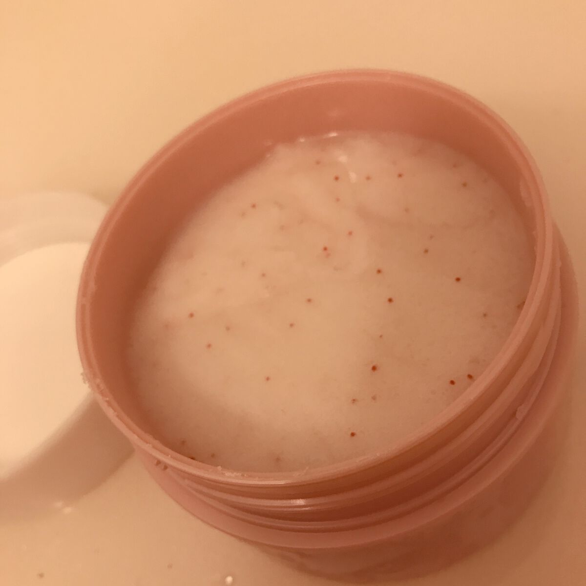 TBCボディスクラブソープ名前からは全く想像つきませんでしたが、トルコアイスみたいにグイーンと伸びるテクスチャーです!中には赤っぽい細かいスクラブがたっぷり入っていて、見た目はかなりしっかり角質取れそうな感じ。でも実際に使ってみると、マイルド...