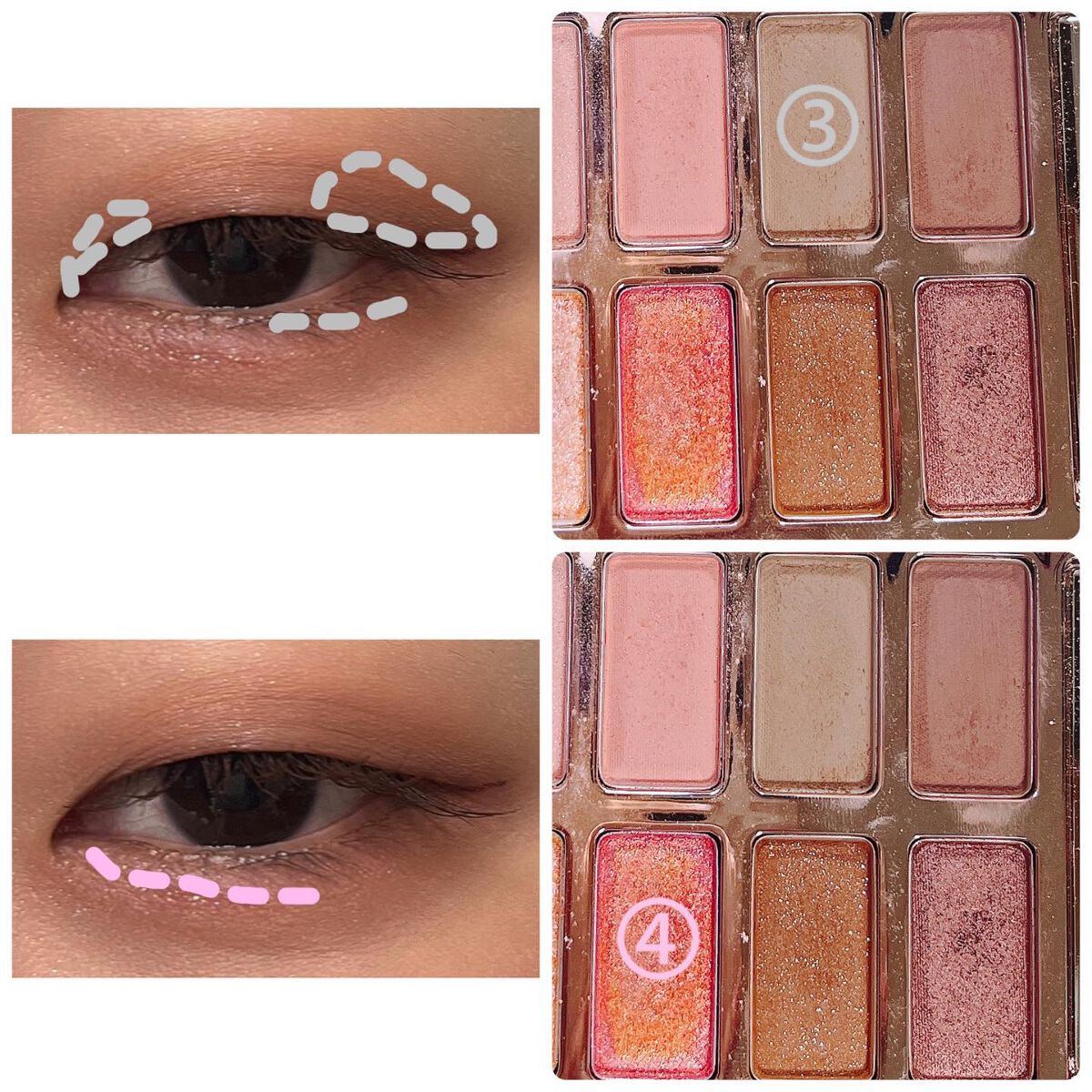#今日のメイク今日の#デイリーメイク今日はピンクパレット🎨秋だからくすみ感強めのピンクを使ってメイクしてみた👀②のカラーがしっかりくすみピンクなのに目元が暗くなりにくいから使いやすい◎締め色を目頭に入れる時は二重幅ぐらいまでであまり広げずに入...