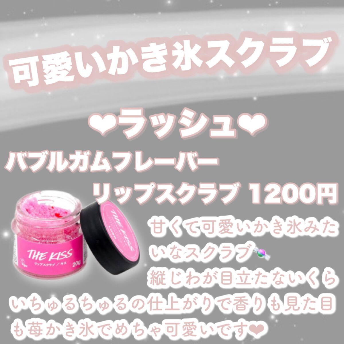 | リップスクラブランキング第1位 | 甘いフレーバーの匂いに誘われ、 ついつい唇を舐めてしまいたくなるスクラブ | 詳細を見る | |