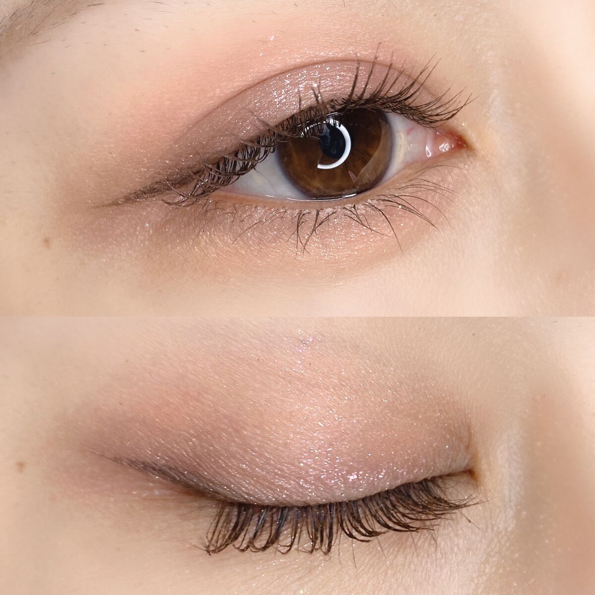 まぶたの裏っていうネーミングがぴったり 目を閉じたときにチラチラするあの感じだよね🎇 ブラウンベースにブルーやピンク、グリーンのラメがたっぷりザックザクに配合されててキラッキラのツヤツヤシャドウ♡ マジョマジョのラメは本当にキレイだなぁ これだけザックザクなのに粉飛びあんまりしないし最高🥰