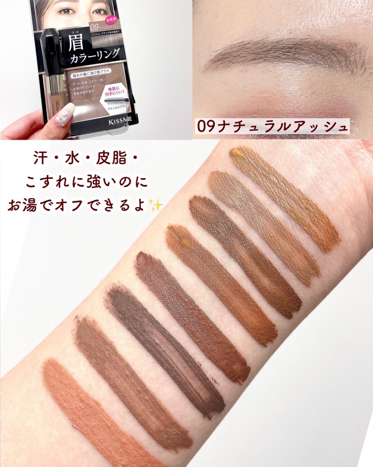 - 瞬時に『ナチュ眉』 ヘアに合わせて明るくチェンジ! ■ひと塗りでしっかり発色 眉毛の黒色をしっかりカバーし、きれいに発色します。 一度塗りでもしっかりと色が付き、重ねて塗るとさらに発色が良くなります。 ■地肌に付きにくく、簡単に塗ることができる、テクニカルブラシ採用 地肌につきにくいコンパクトサイズのテクニカルブラシを採用しています。 ムラになりにくく、誰でも簡単に塗ることができます。 ■どんな髪色にも対応できるカラーバリエーション 眉色を髪色に合わせたり、色味をおさえて明るくするだけで、自然でふんわりとした雰囲気に仕上がります。さらに、アイメイクを引き立て目を大きく見せます。 ■長時間落ちにくいのに、お湯で簡単オフ 汗・水・皮脂・こすれに強く、長時間落ちにくい処方です。 フィルムタイプなので、ぬるま湯でスルッと簡単に落とせます。 ■パンテノール(眉毛保護成分)配合 水溶性のビタミンで、肌に潤いと弾力を与えます。眉毛にツヤ・ハリを与えます。