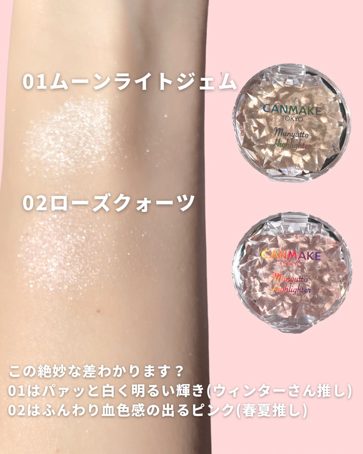 01 ムーンライトジェム ほんのり黄み寄りの明るめ王道ベージュカラー 1stか2ndにイエベが入る人にイチオシ! 04 ブルートパーズ (限定) しっかり青みの透明感ブルーカラー 1st2ndブルベの人はこれがおすすめ! このハイライトの定番色は LIPSショッピングでも在庫あるよ🙌🏻