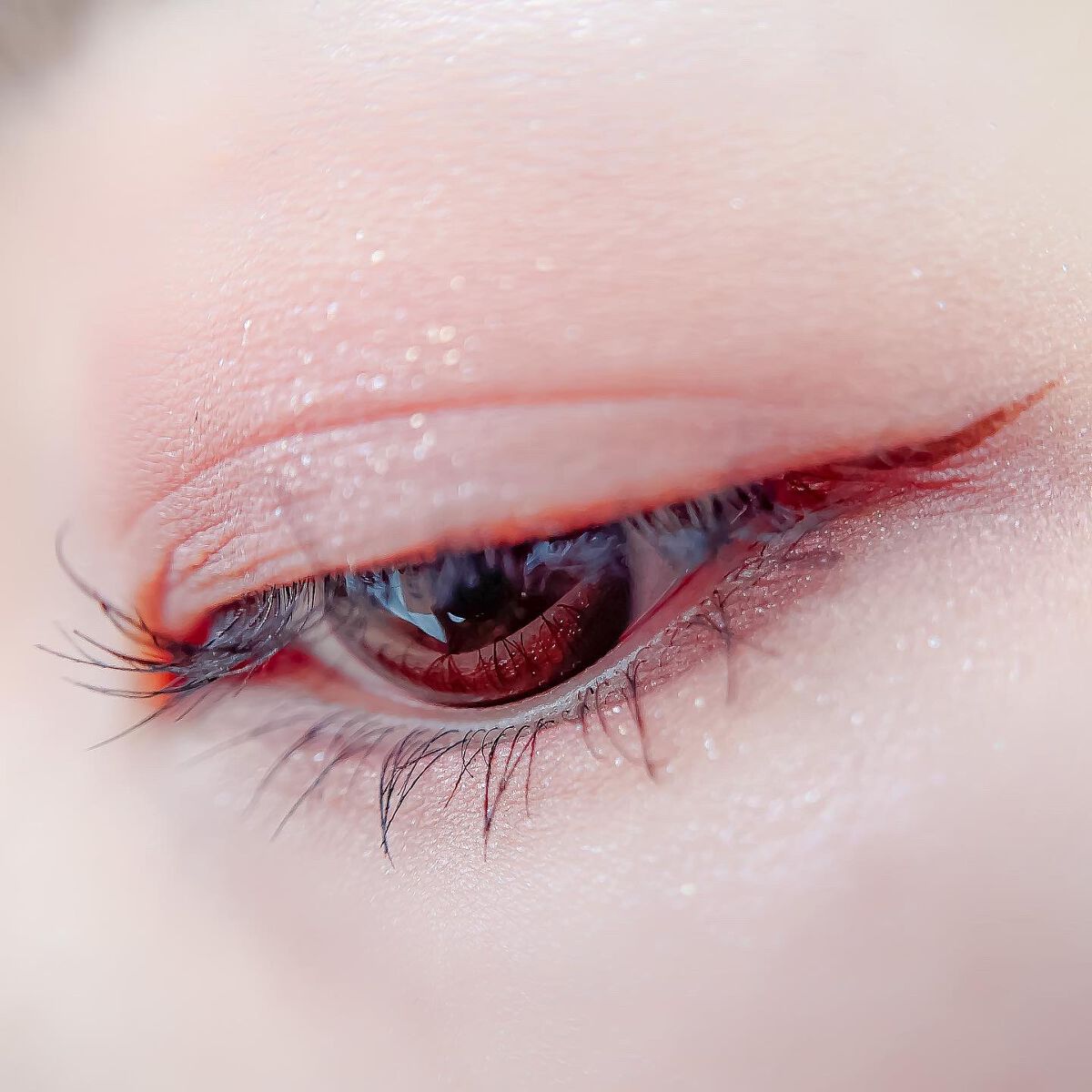 ピンクにグレージュも良いですね👌💗 今日は可愛らしい感じにしてみました💕 上下瞼黒目〜目頭側にラメを塗ってキラキラさせております🤩 目尻はマットのピンクを濃いめに重ねて💗 グレージュのアイライナーと相性◎