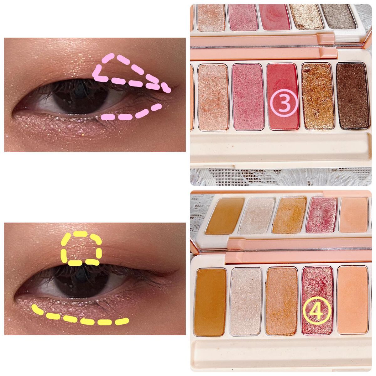 #今日のメイク今日の#デイリーメイク今日はピンクパレット🎨秋だからくすみ感強めのピンクを使ってメイクしてみた👀②のカラーがしっかりくすみピンクなのに目元が暗くなりにくいから使いやすい◎締め色を目頭に入れる時は二重幅ぐらいまでであまり広げずに入...