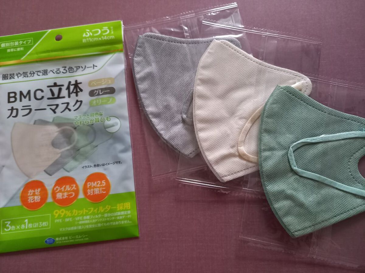 機能も良いし、カラフルでお洒落♫ 1日つけていても内側がケバたたなかったし、耳も痛くならず、窮屈感もなかったのでよかったです。 3色あるから、その日の気分で色を選んだり、自分の顔が映える色を見つけられたらラッキーですね。 私は顔が大きいので小さく見せたいから立体タイプを使いたいけど、ゆとりのあるヒダタイプの方が落ちつきました。 色はグリーンが好きだけど、ベージュの方が似合うかなと。 マスク生活はまだまだ読きそうなので、楽しみたいと思います♪