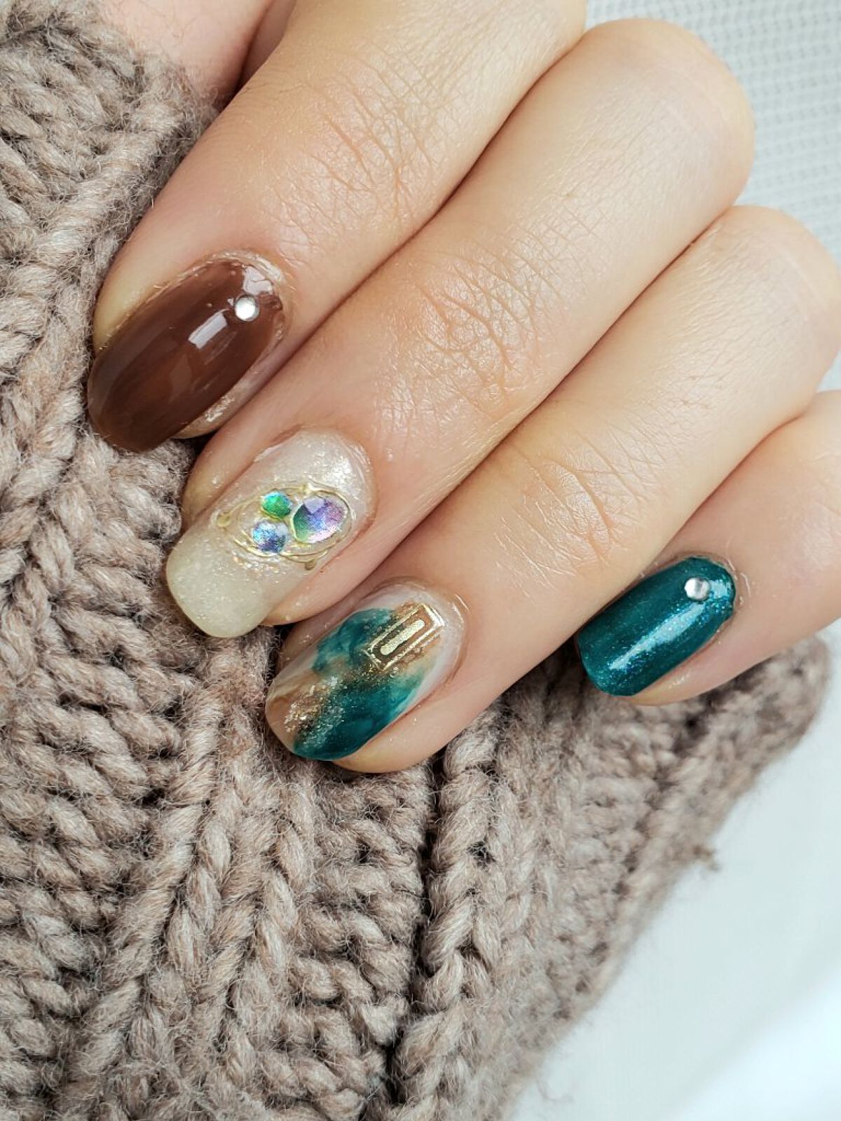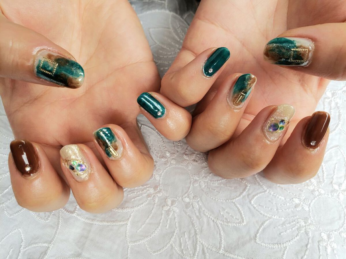 • 土木系おねいさん on LIPS 「今日は大人っぽニュアンスネイル🖤青緑とブラウンで、ぐっとクール..」(10枚目)